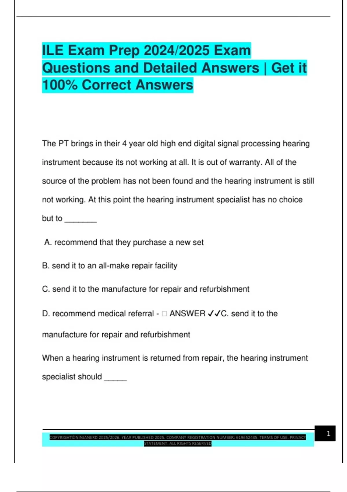ANSWER ✔✔C. preforms a hearing test, reprograms the instrument, and