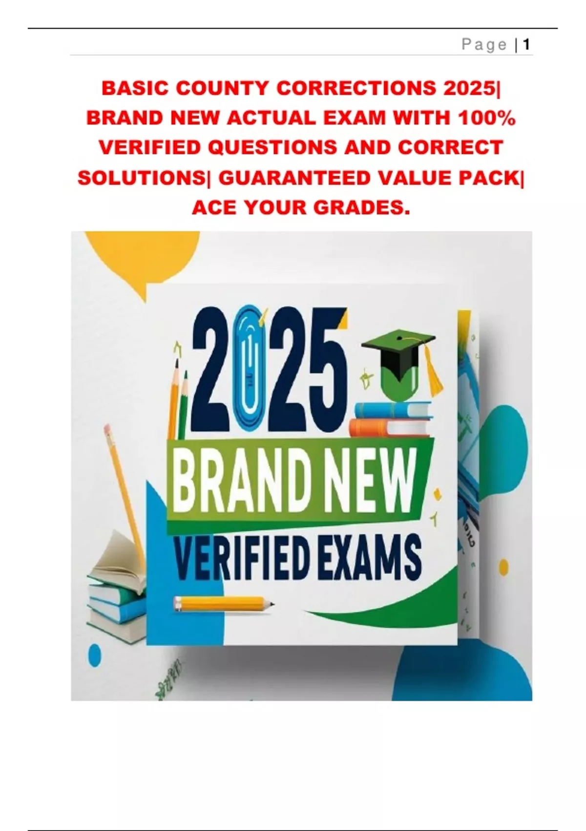BASIC COUNTY CORRECTIONS 2025| BRAND NEW ACTUAL EXAM WITH 100% VERIFIED QUESTIONS AND CORRECT SOLUTIONS| GUARANTEED VALUE PACK| ACE YOUR GRADES.