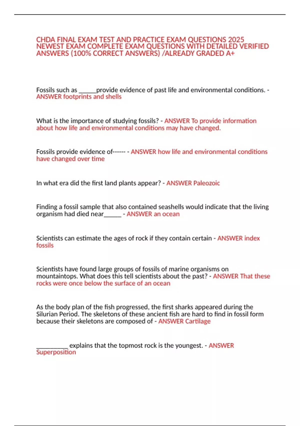 Fossils provide evidence of------ - ANSWER how life and environmental conditions