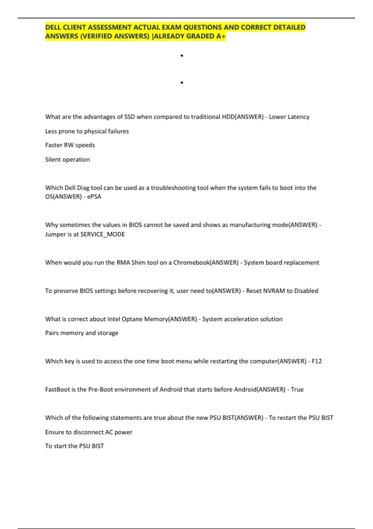 DELL CLIENT ASSESSMENT ACTUAL EXAM QUESTIONS AND CORRECT DETAILED