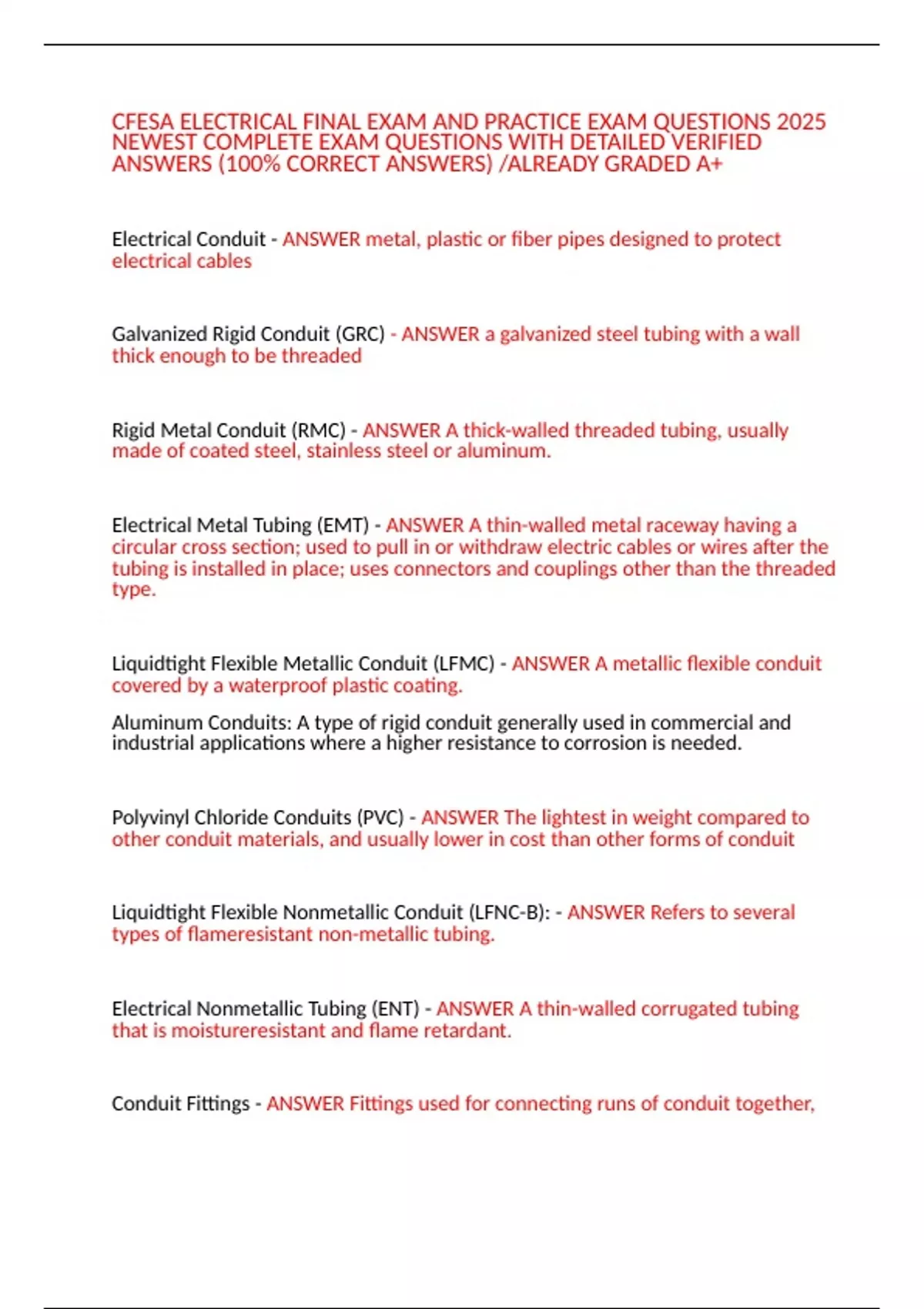 CFESA ELECTRICAL FINAL EXAM AND PRACTICE EXAM QUESTIONS 2025
