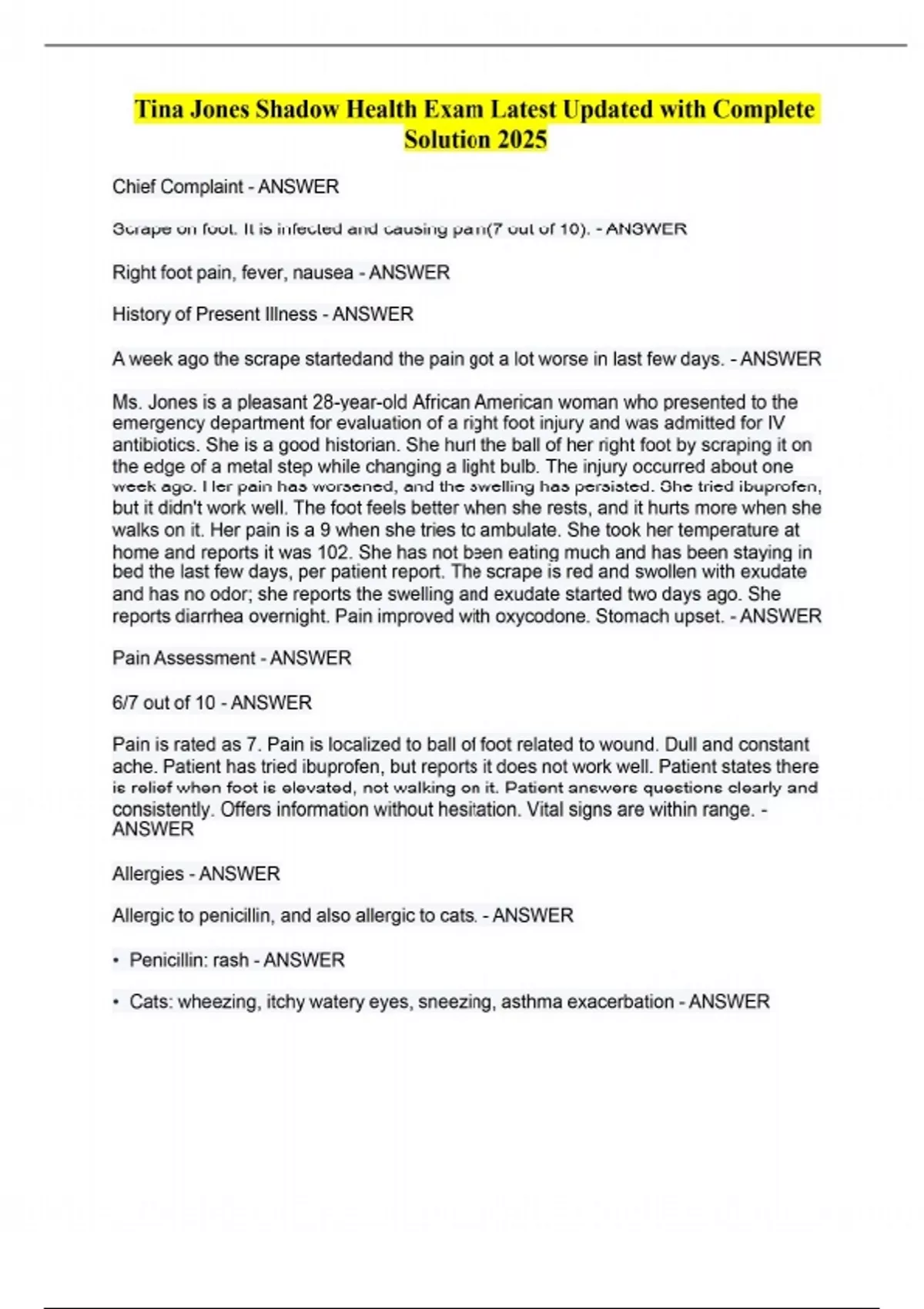 Tina Jones Shadow Health Exam Latest Updated with Complete Solution 2025