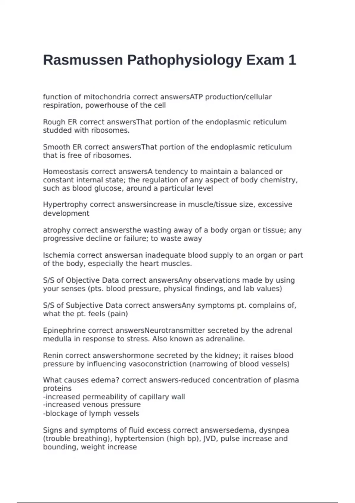 Signs and symptoms of fluid excess correct answersedema, dysnpea