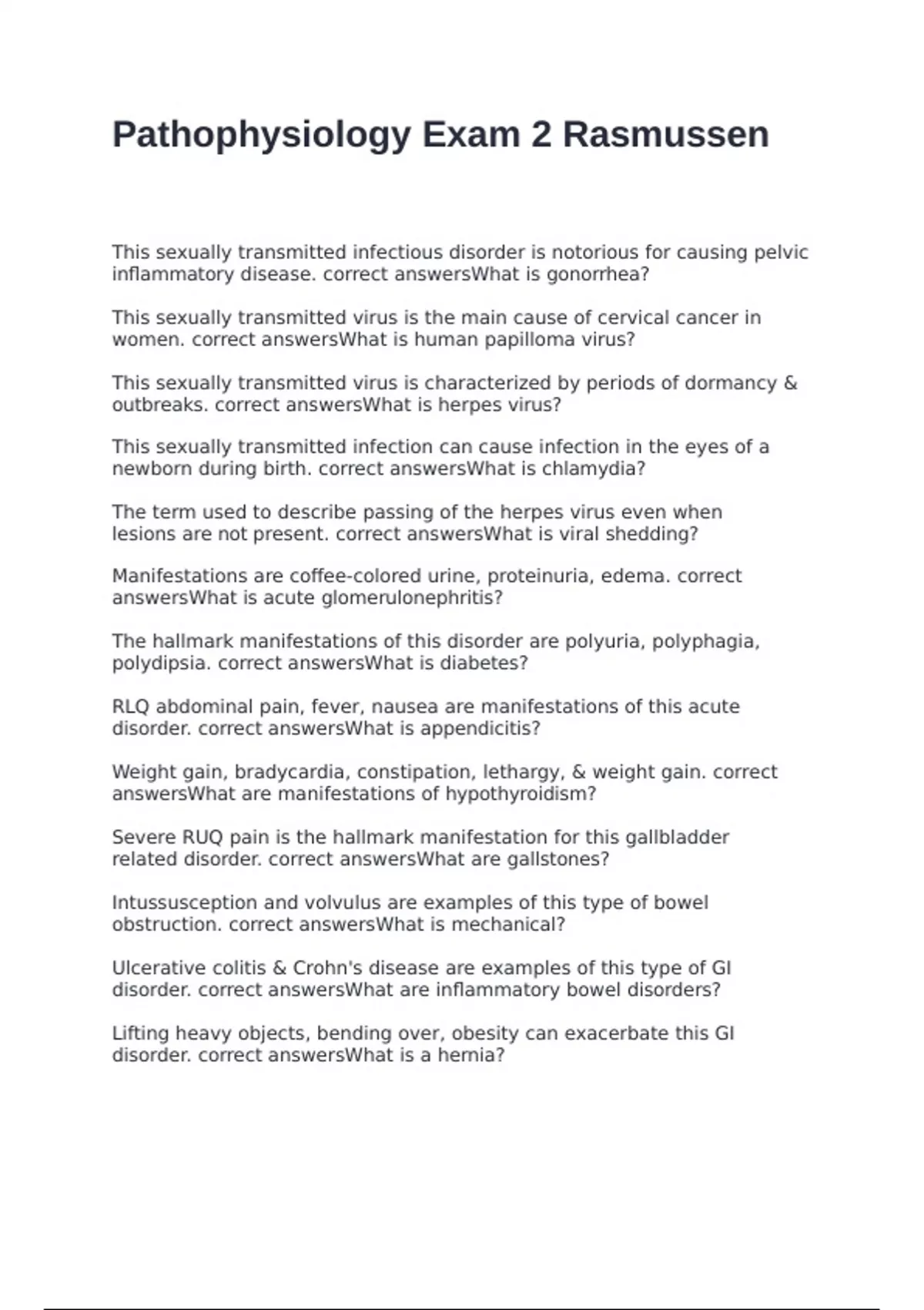 inflammatory disease. correct answersWhat is gonorrhea?