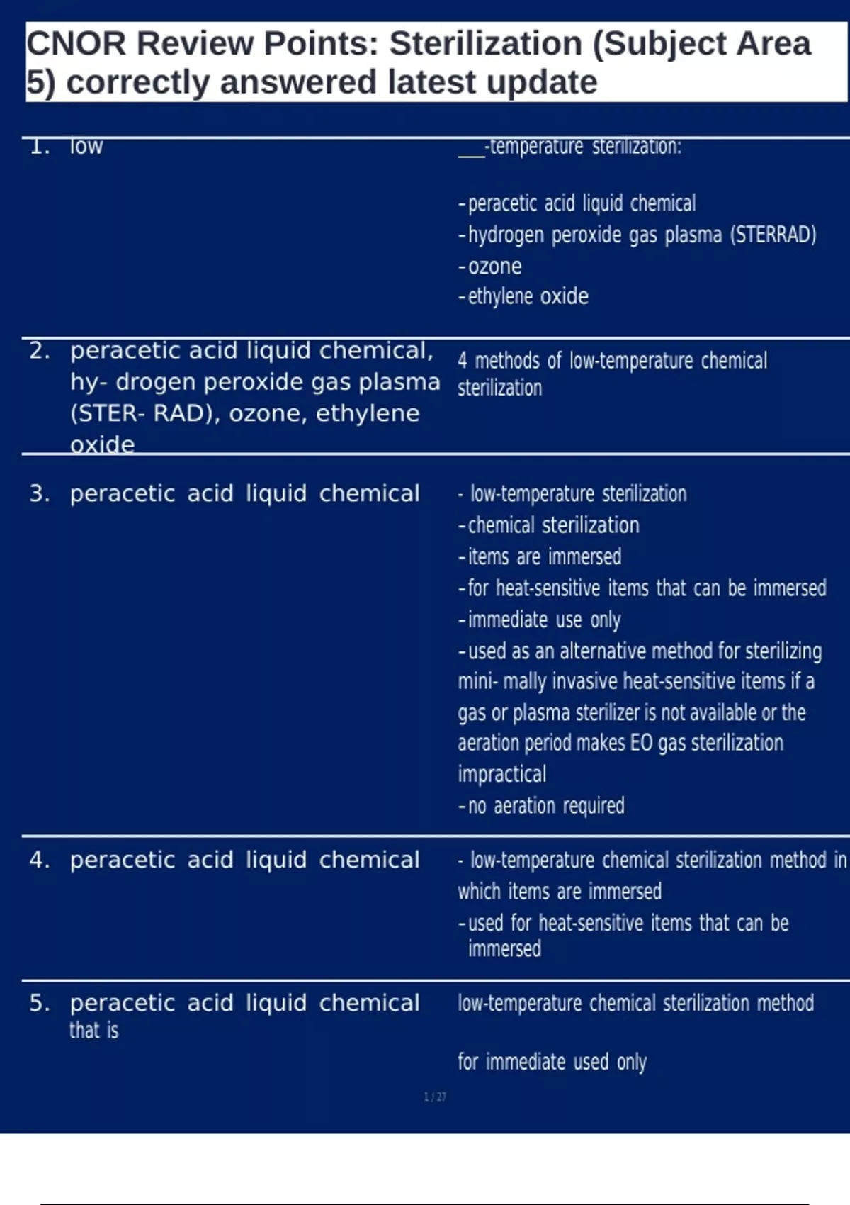 , CNOR Review Points: Sterilization (Subject Area