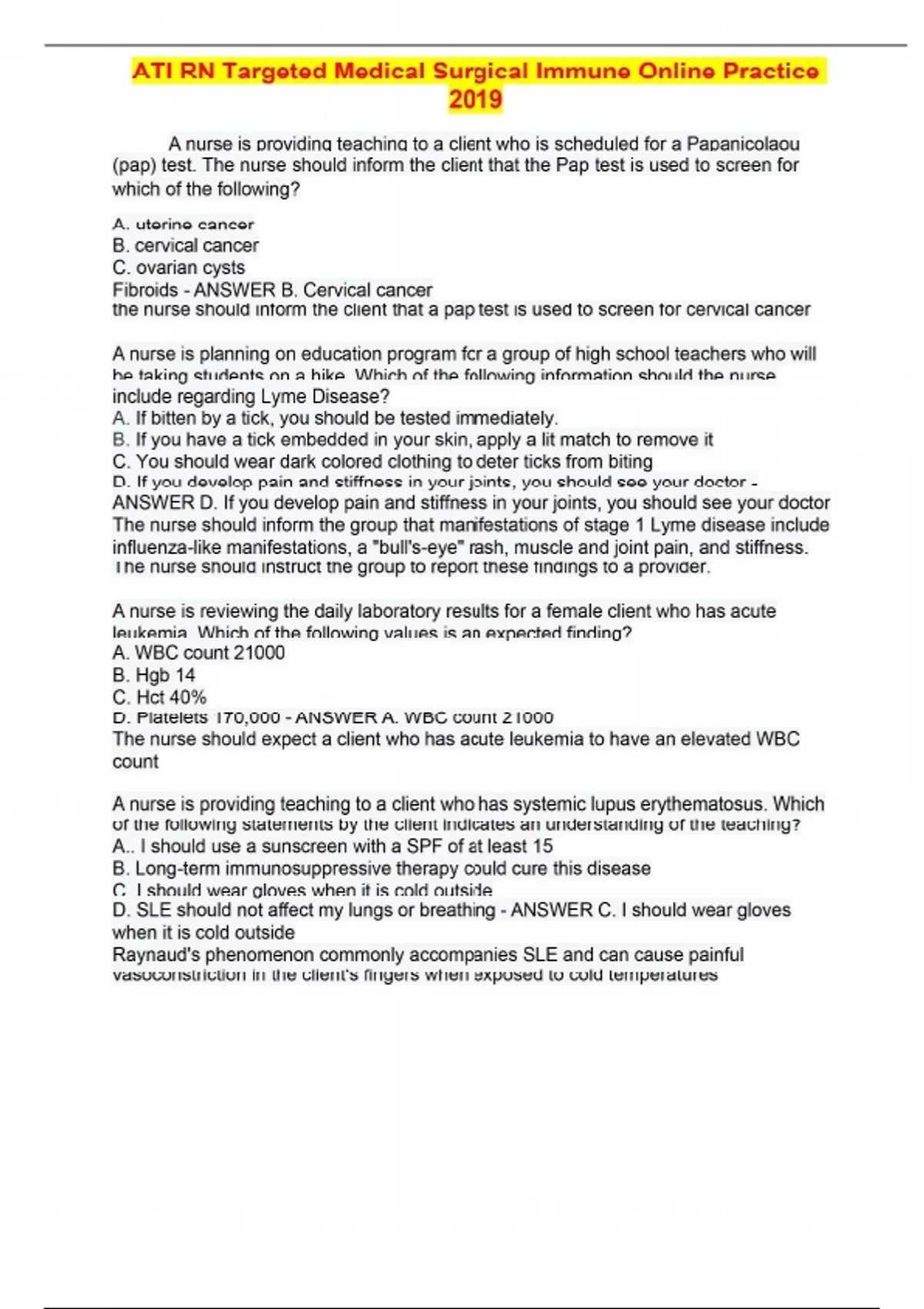 ATI RN Targeted Medical Surgical Immune Online Practice 2019