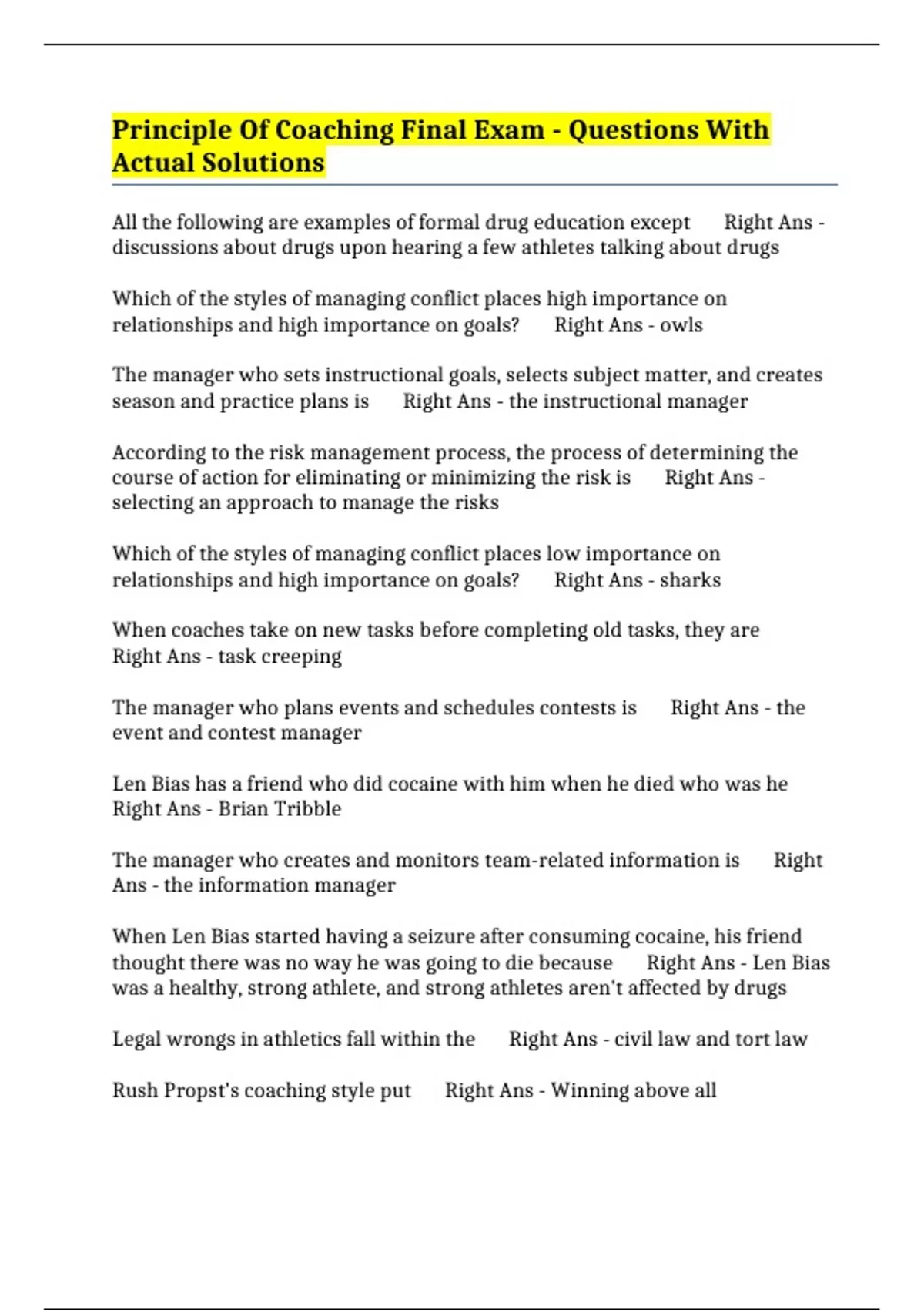 Principle Of Coaching Final Exam - Questions With Actual Solutions