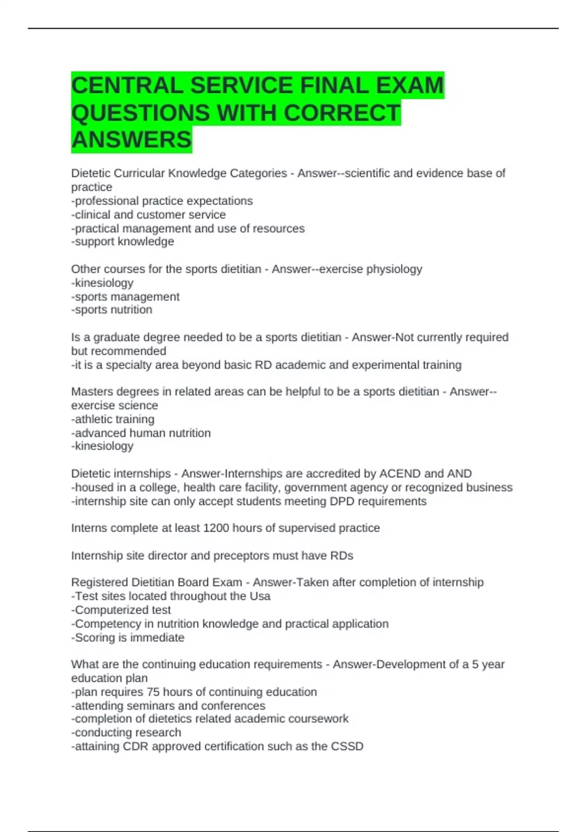 Registered Dietitian Board Exam - Answer-Taken after completion of internship