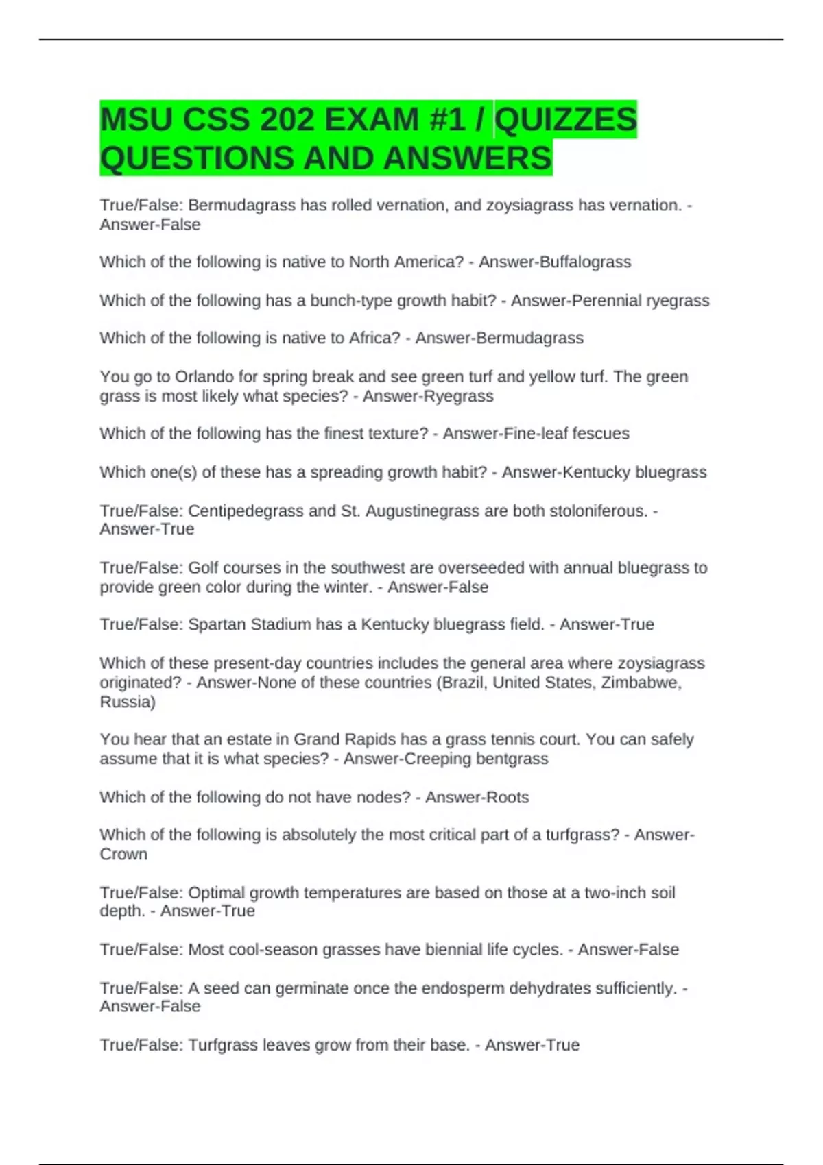 MSU CSS 202 EXAM #1 / QUIZZES QUESTIONS AND ANSWERS