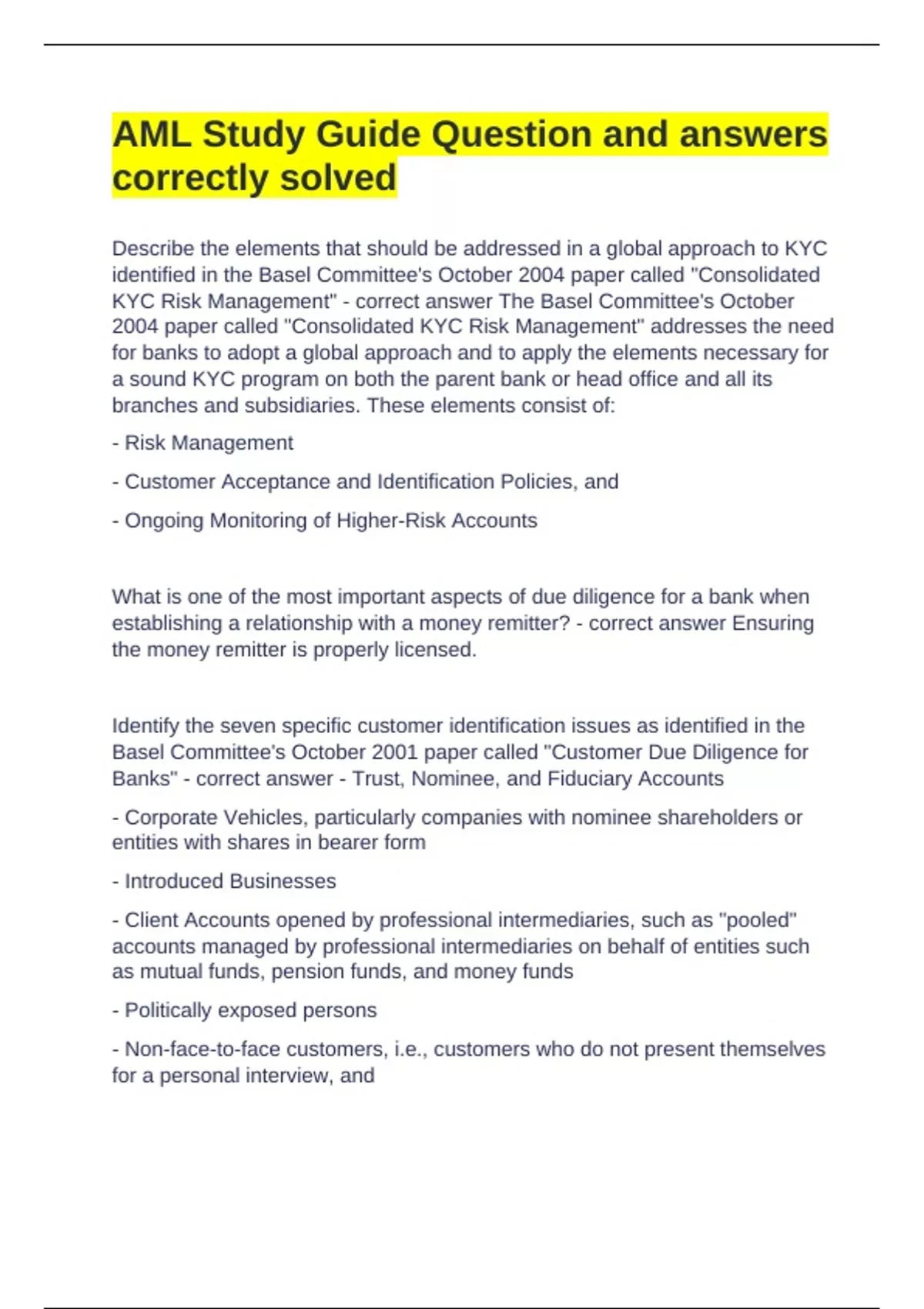 KYC Risk Management" - correct answer The Basel Committee's October
