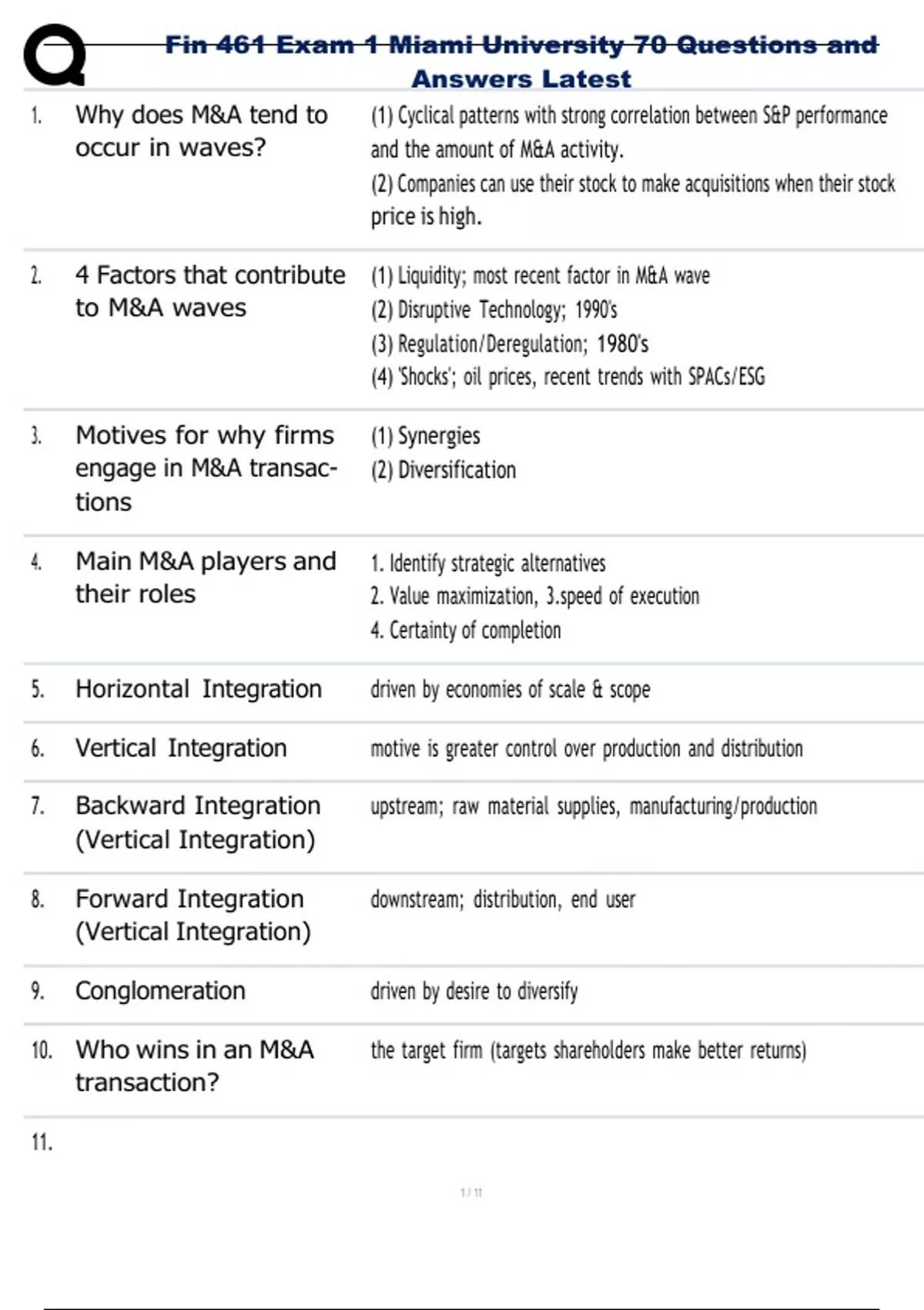 Fin 461 Exam 1 Miami University 70 Questions and Answers Latest