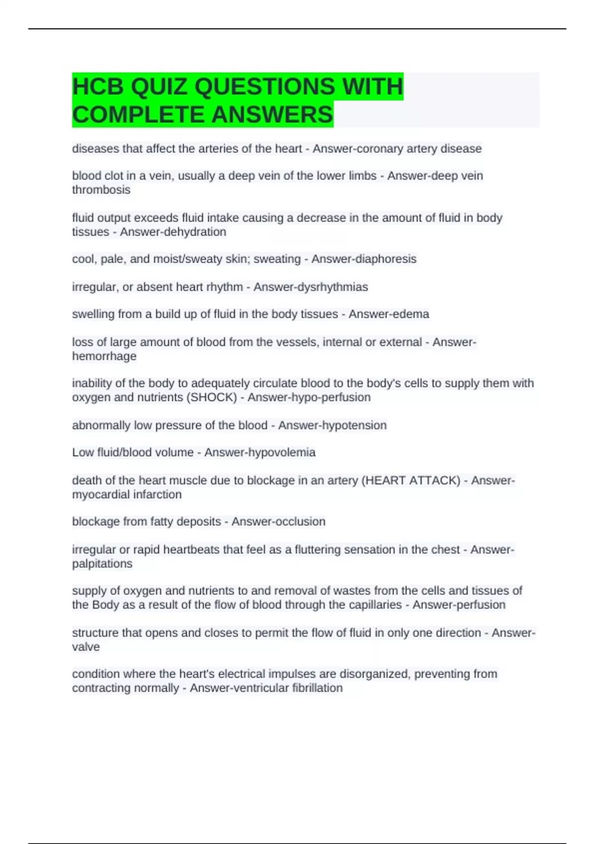 HCB QUIZ QUESTIONS WITH COMPLETE ANSWERS
