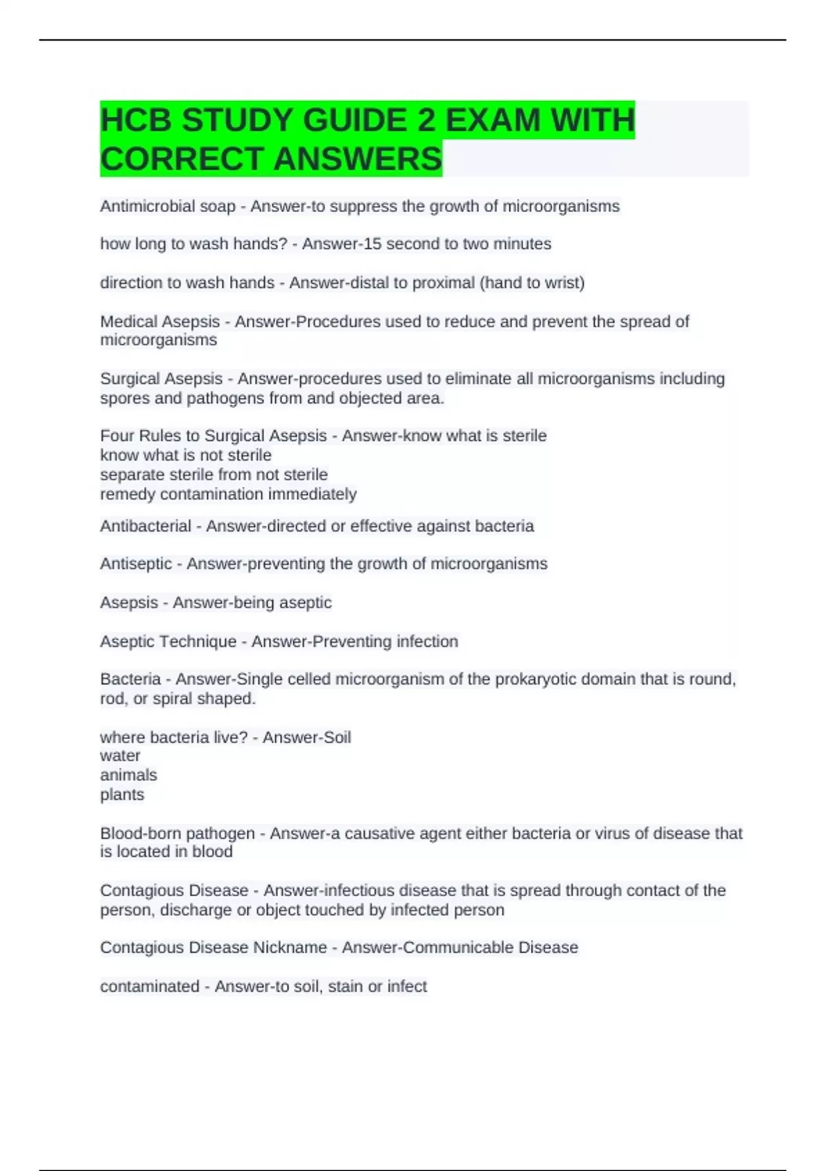 HCB STUDY GUIDE 2 EXAM WITH CORRECT ANSWERS