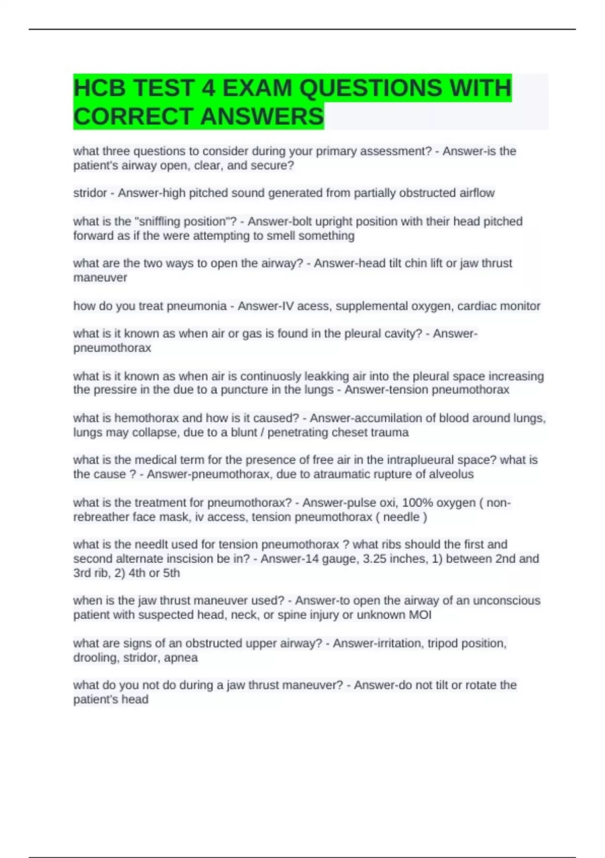 HCB TEST 4 EXAM QUESTIONS WITH CORRECT ANSWERS