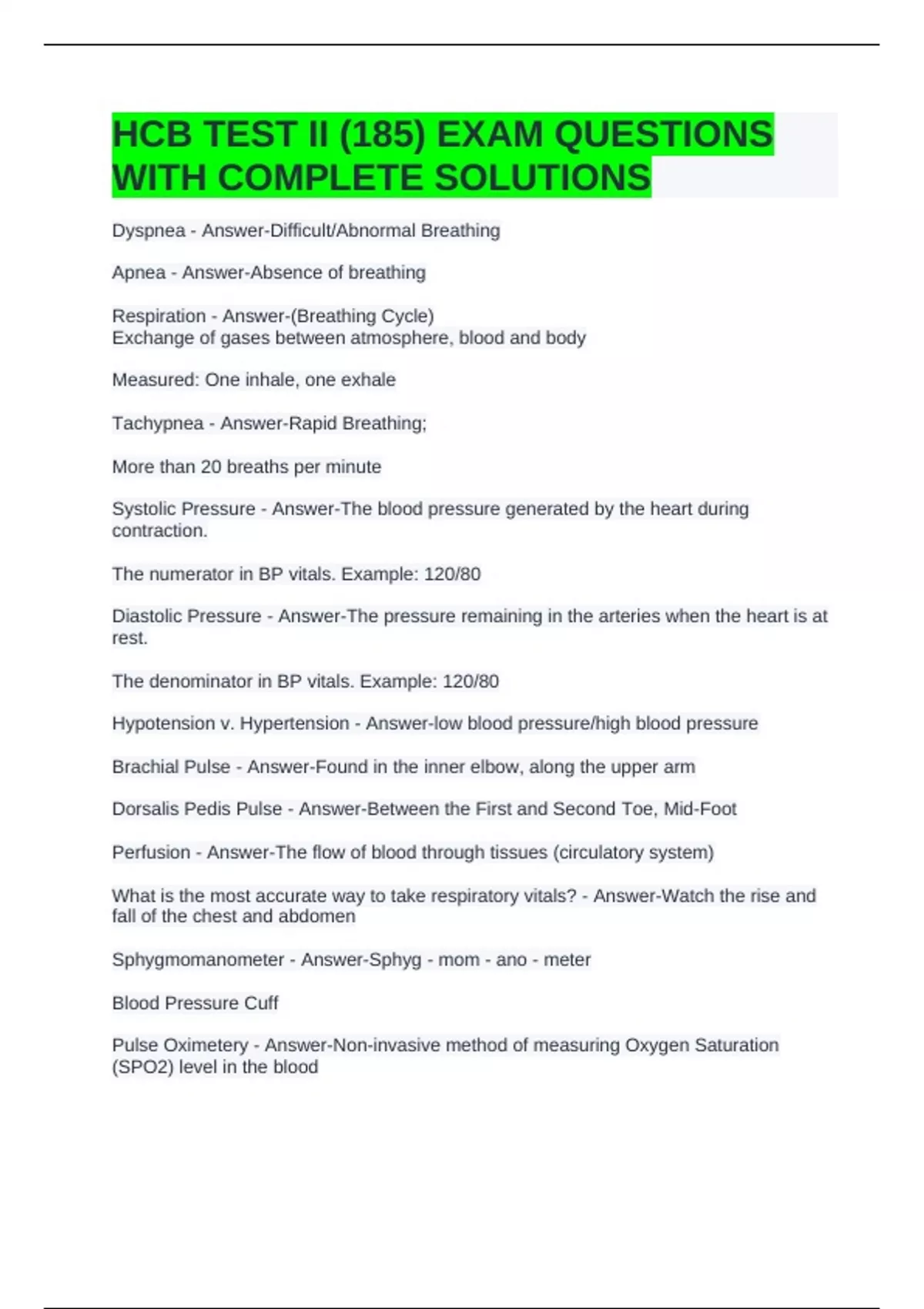 HCB TEST II (185) EXAM QUESTIONS WITH COMPLETE SOLUTIONS