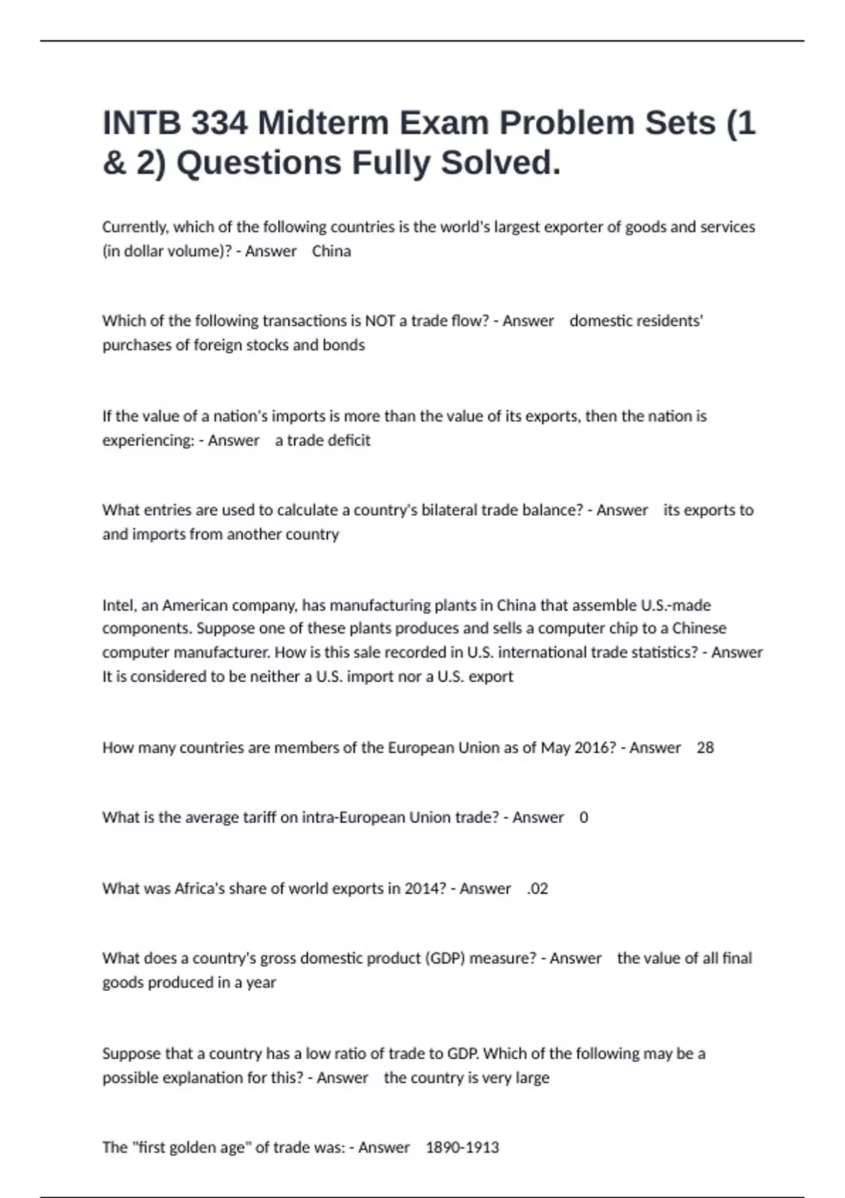 Which of the following transactions is NOT a trade flow? - Answer domestic residents'