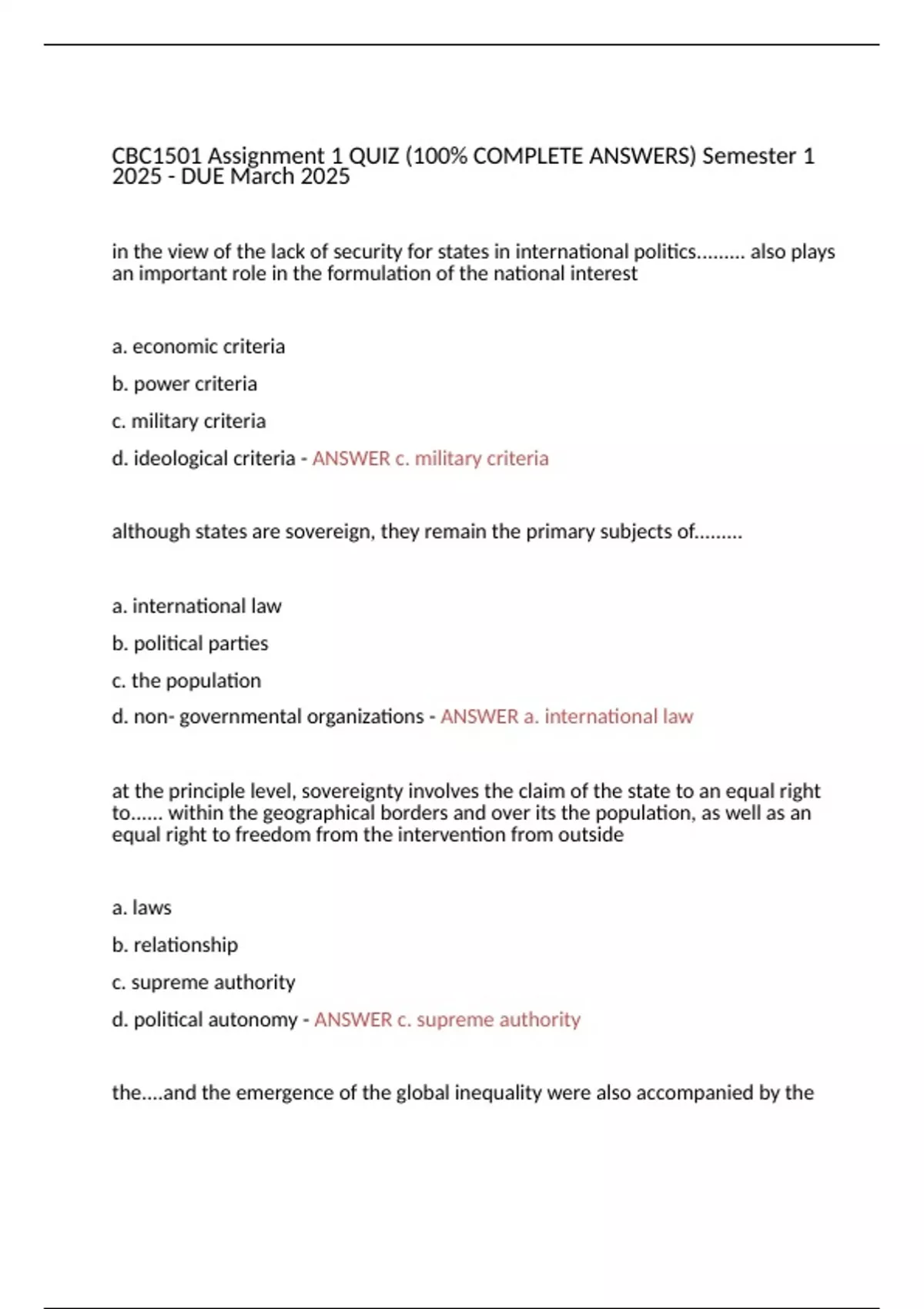 CBC1501 Assignment 1 QUIZ (100% COMPLETE ANSWERS) Semester 1