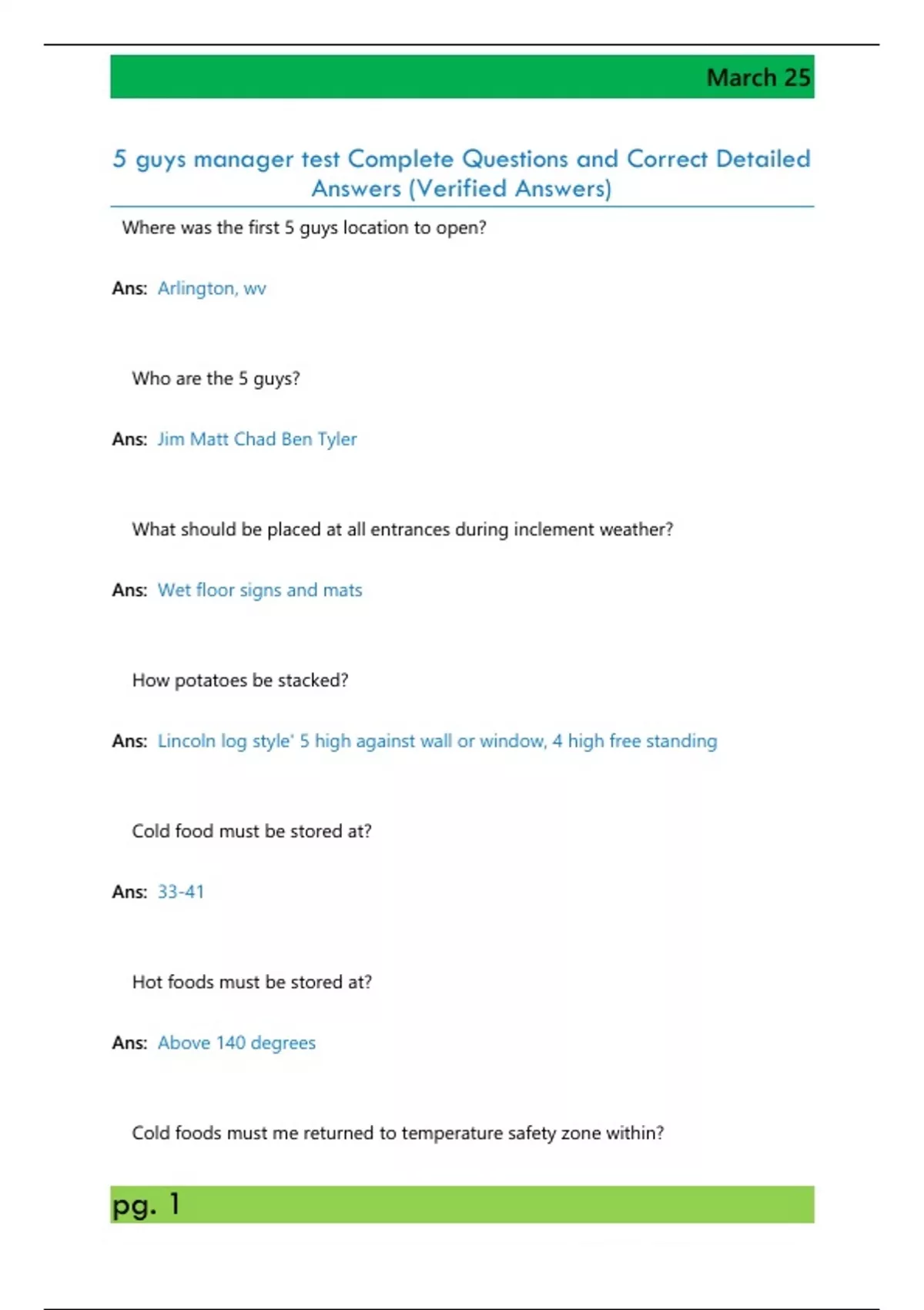 5 guys manager test Complete Questions and Correct Detailed