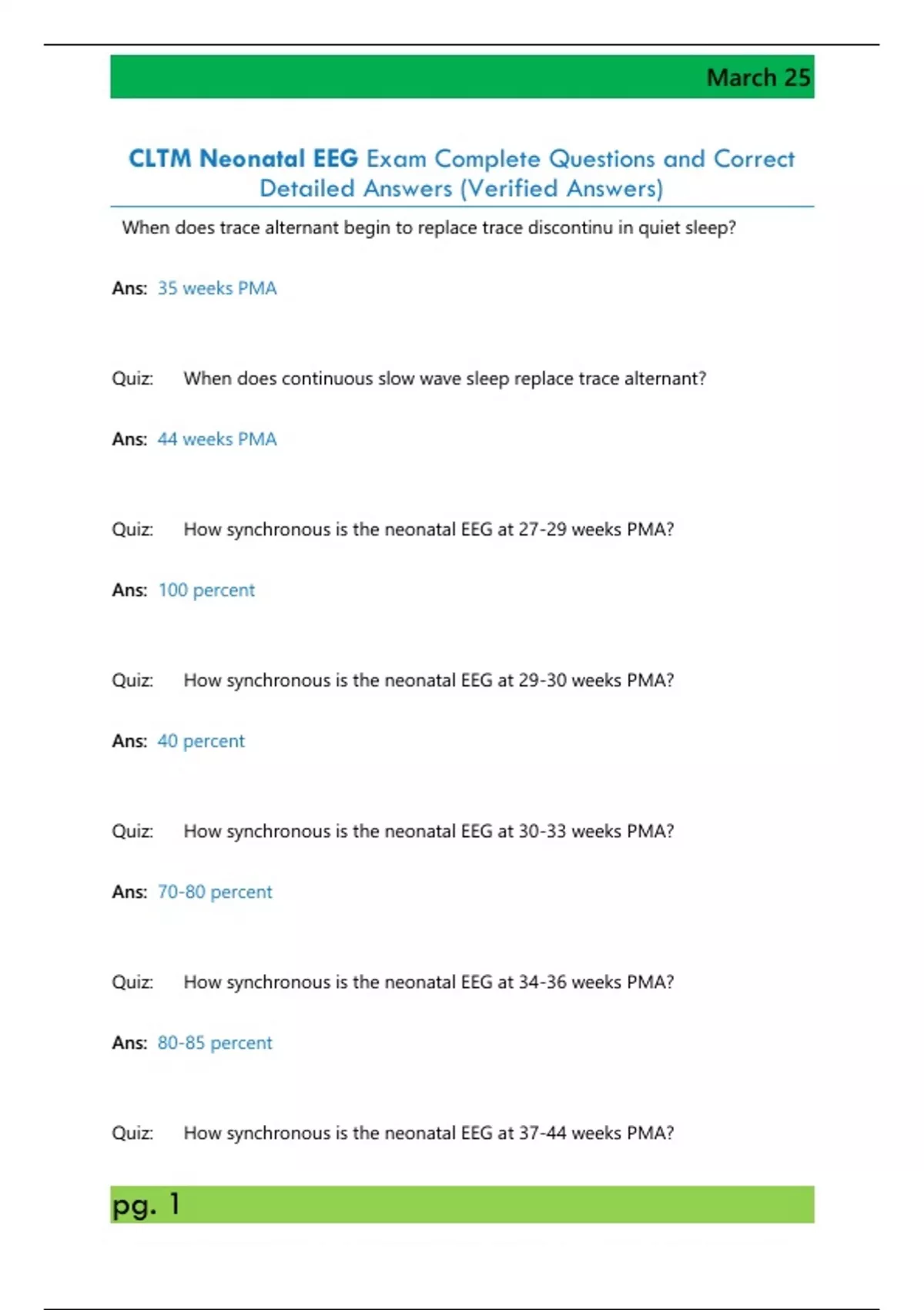 CLTM Neonatal EEG Exam Complete Questions and Correct