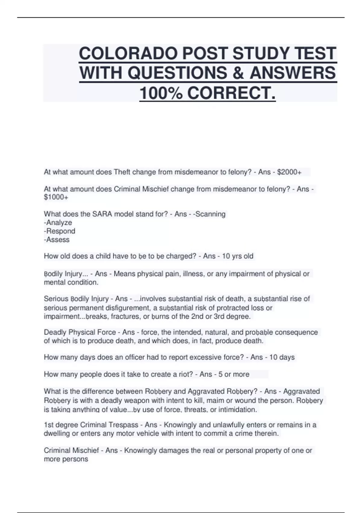 COLORADO POST STUDY TEST WITH QUESTIONS & ANSWERS 100% CORRECT.