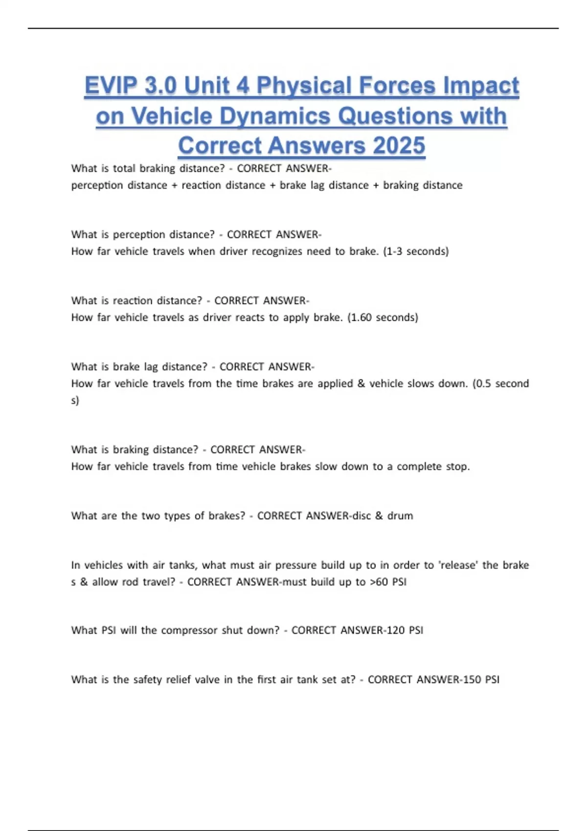 EVIP 3.0 Unit 4 Physical Forces Impact on Vehicle Dynamics Questions with Correct Answers 2025