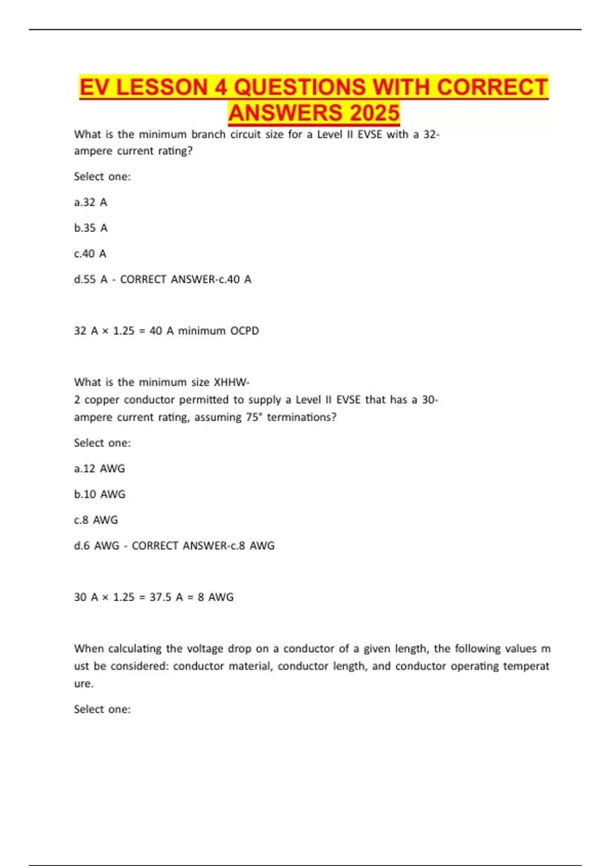 EV LESSON 4 QUESTIONS WITH CORRECT