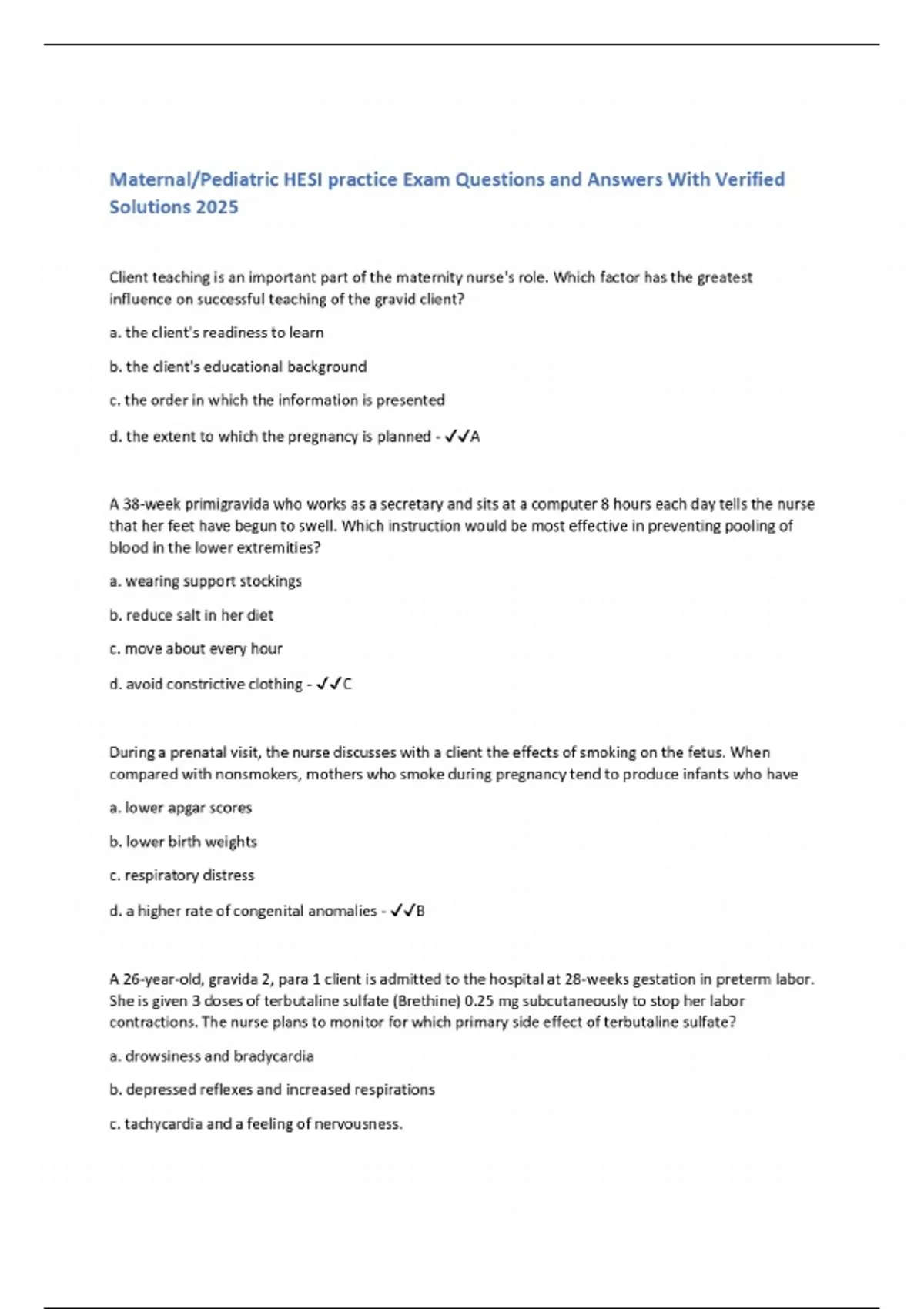 Maternal/Pediatric HESI practice Exam Questions and Answers With Verified Solutions 2025