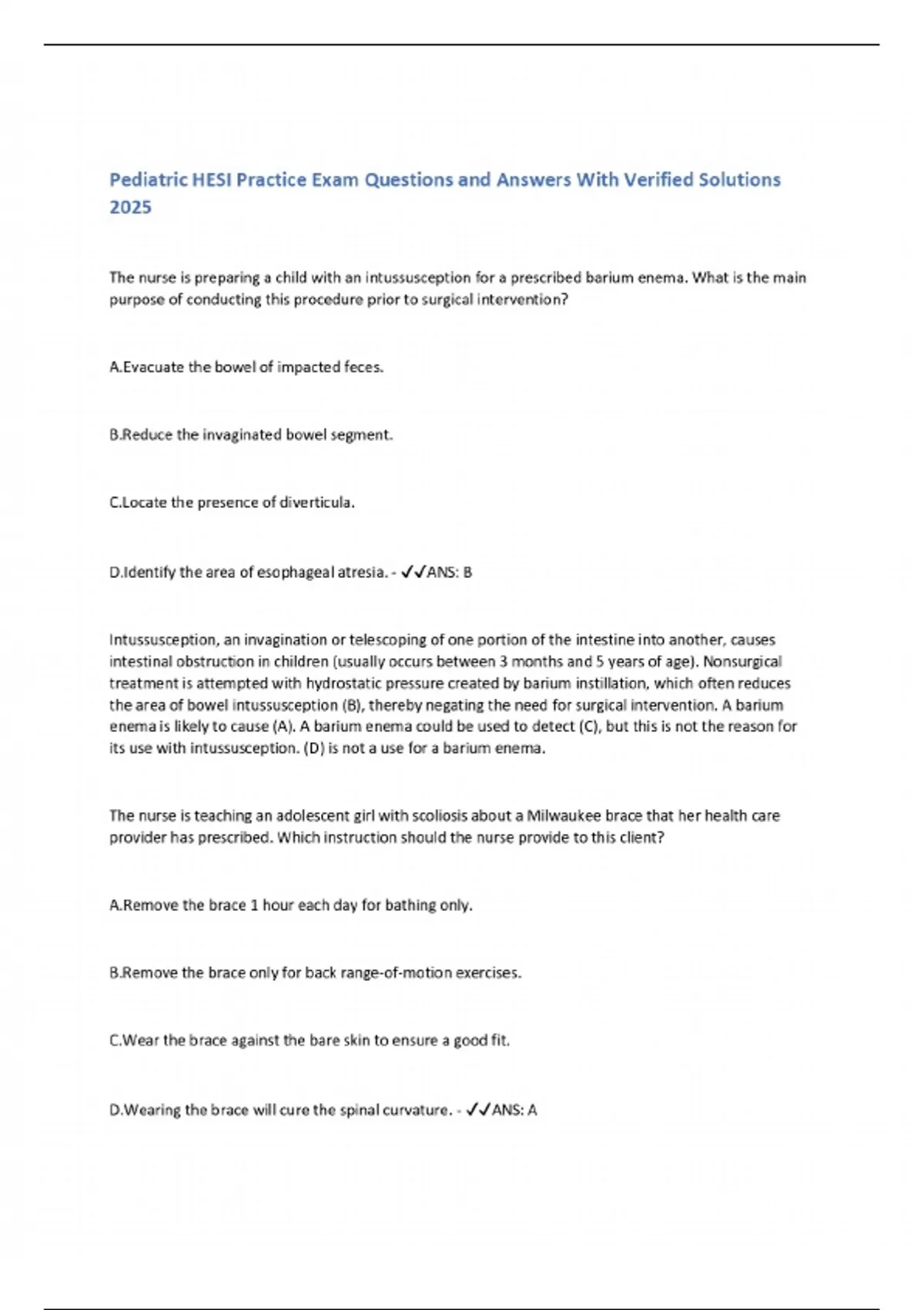 Pediatric HESI Practice Exam Questions and Answers With Verified Solutions 2025