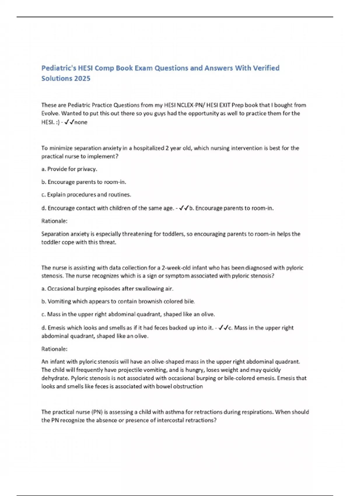 pediatrics hesi comp book exam questions and answ