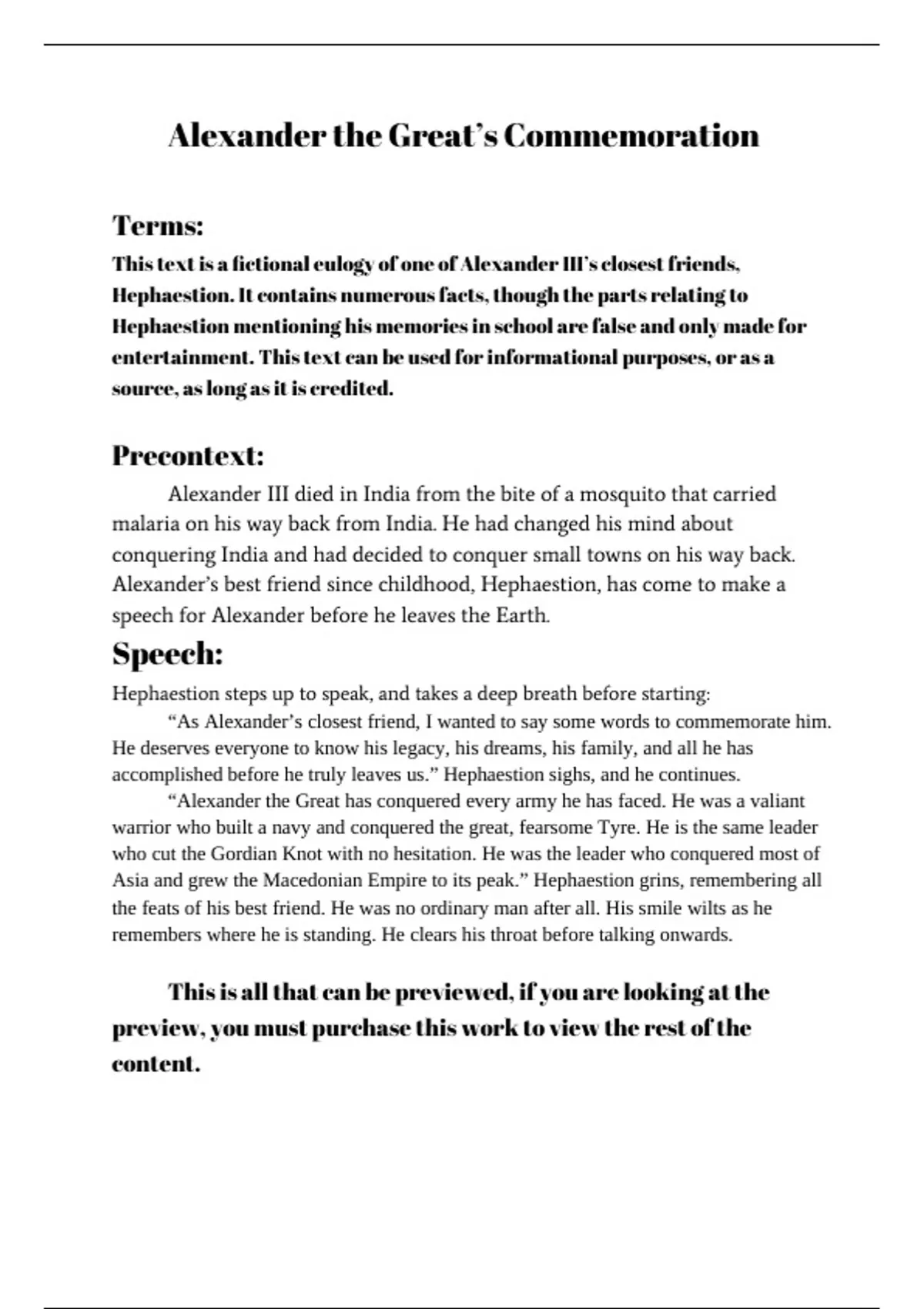 This text is a fictional eulogy of one of Alexander III’s closest friends,