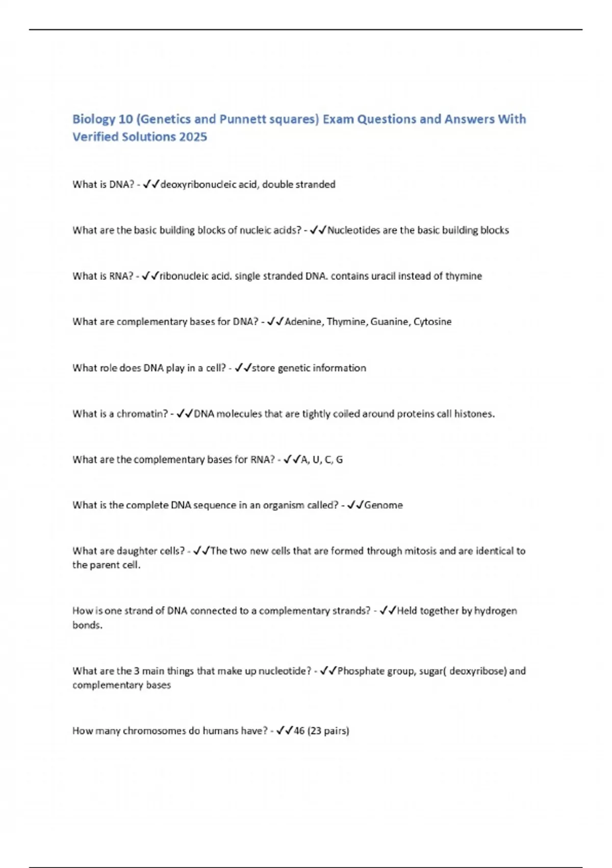Biology 10 (Genetics and Punnett squares) Exam Questions and Answers With Verified Solutions 2025