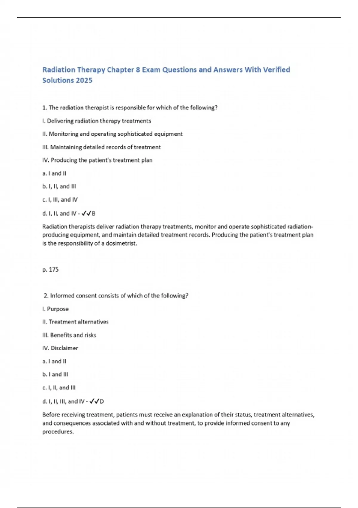 Radiation Therapy Chapter 8 Exam Questions and Answers With Verified Solutions 2025