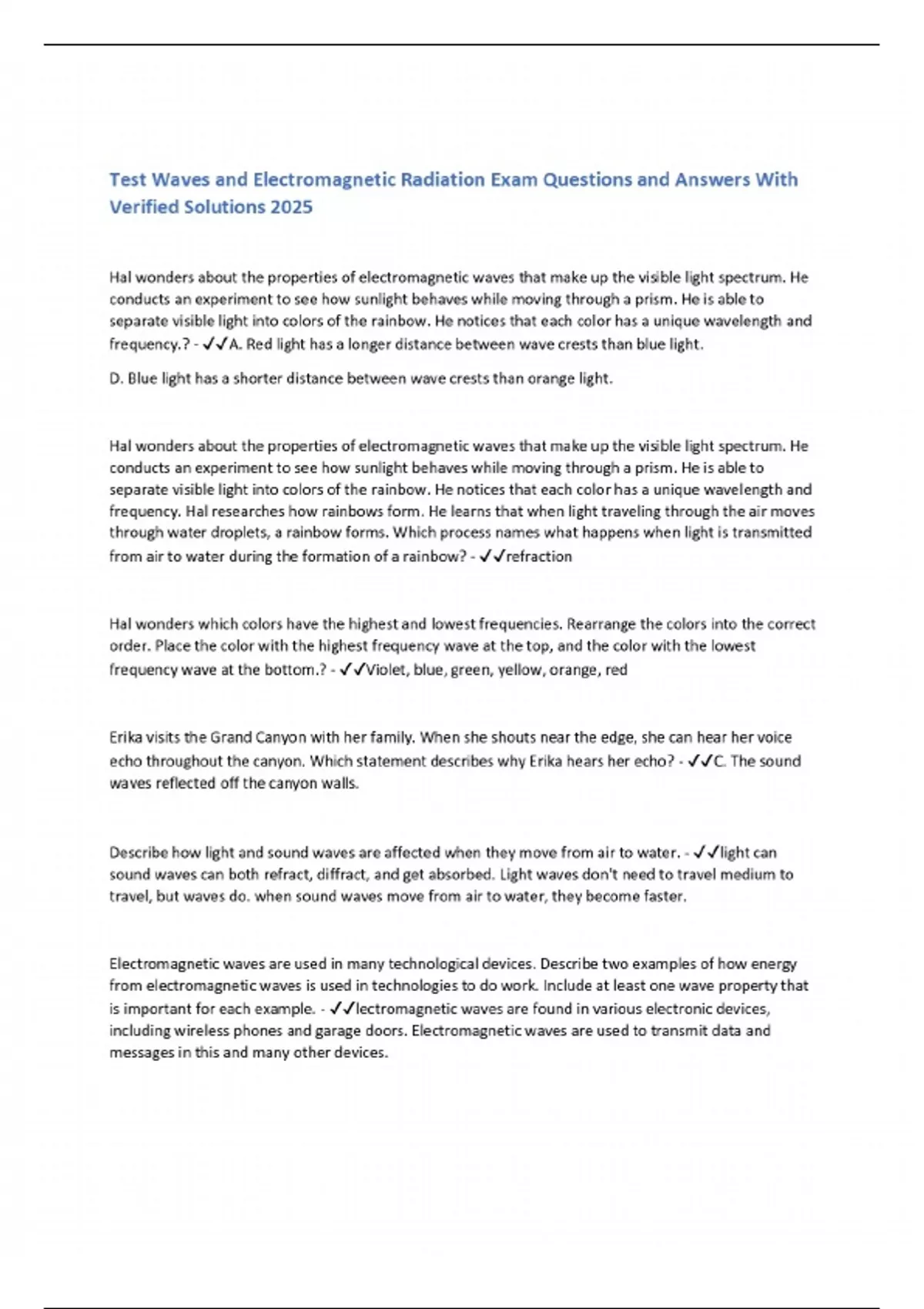 Test Waves and Electromagnetic Radiation Exam Questions and Answers With Verified Solutions 2025