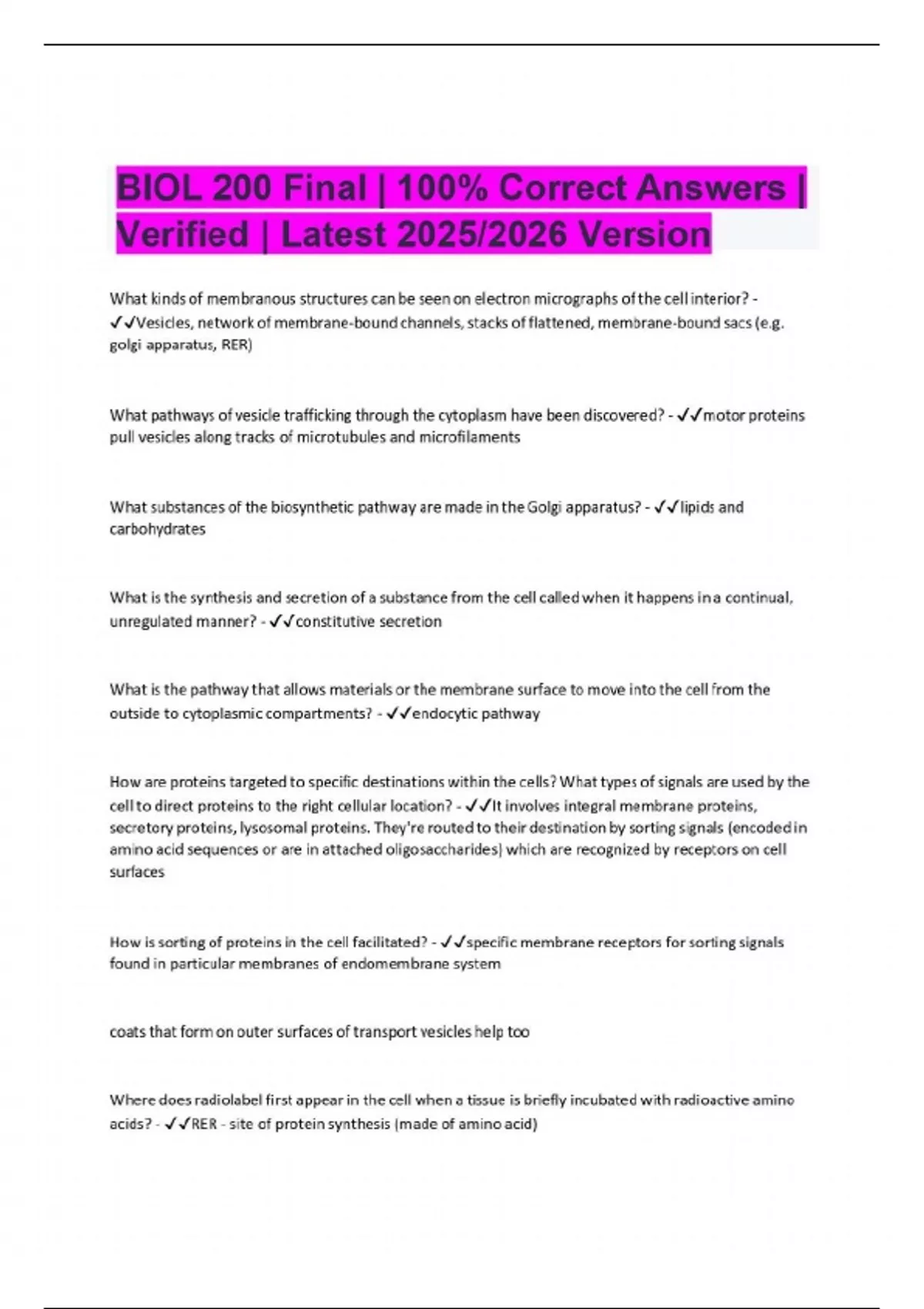BIOL 200 Final | 100% Correct Answers | Verified | Latest 2025/2026 Version