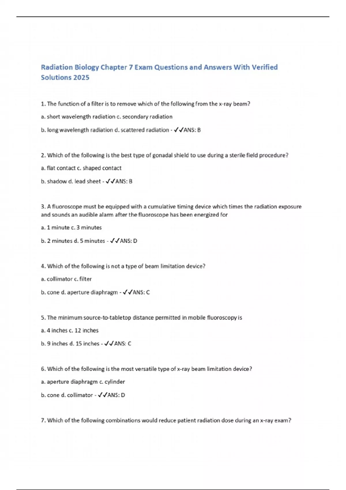 Radiation Biology Chapter 7 Exam Questions and Answers With Verified Solutions 2025