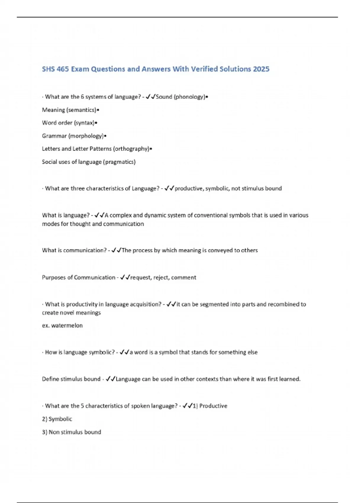 SHS 465 Exam Questions and Answers With Verified Solutions 2025
