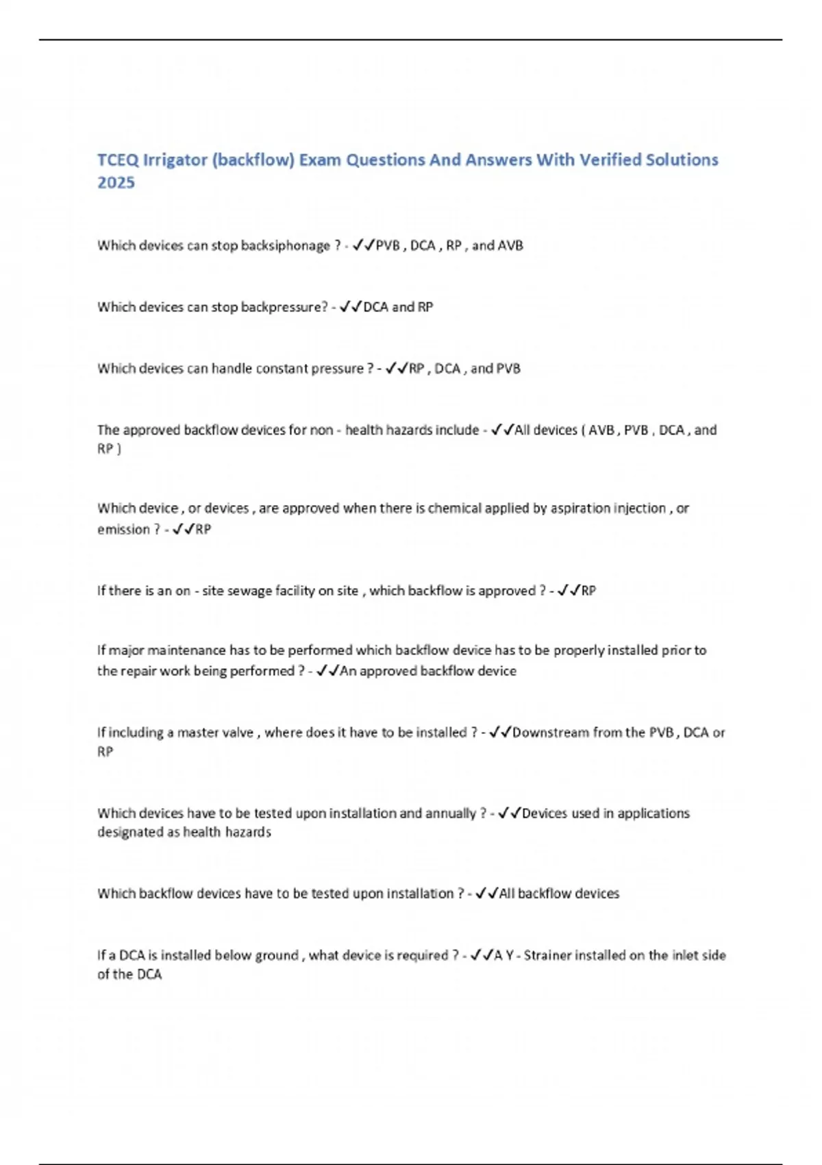 TCEQ Irrigator (backflow) Exam Questions And Answers With Verified Solutions 2025