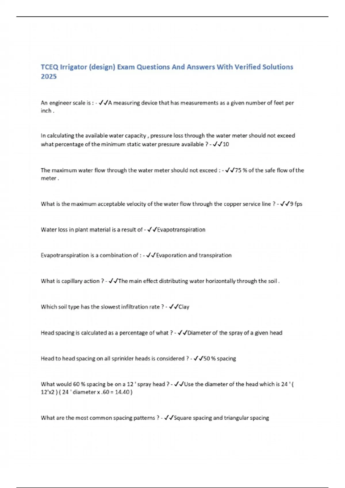 TCEQ Irrigator (design) Exam Questions And Answers With Verified Solutions 2025
