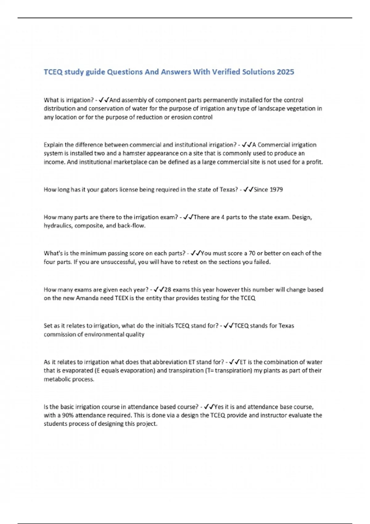 TCEQ study guide Questions And Answers With Verified Solutions 2025