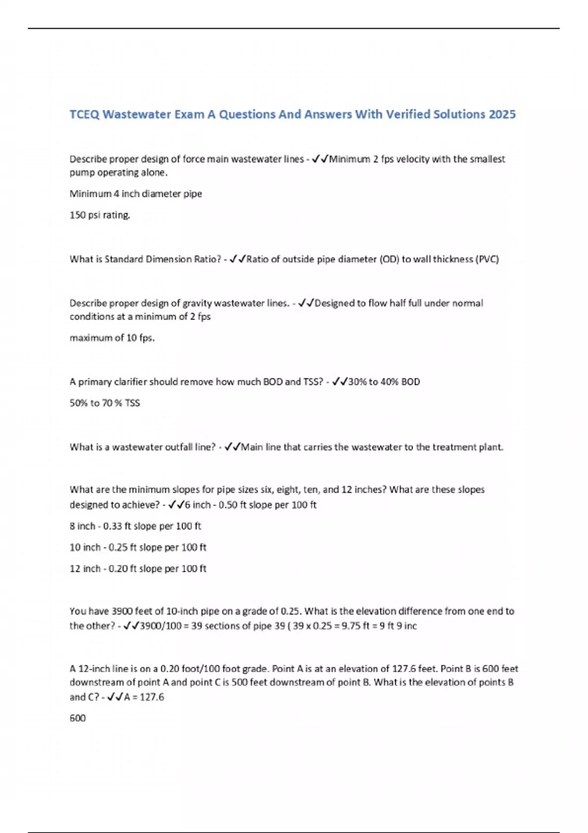 TCEQ Wastewater Exam A Questions And Answers With Verified Solutions 2025