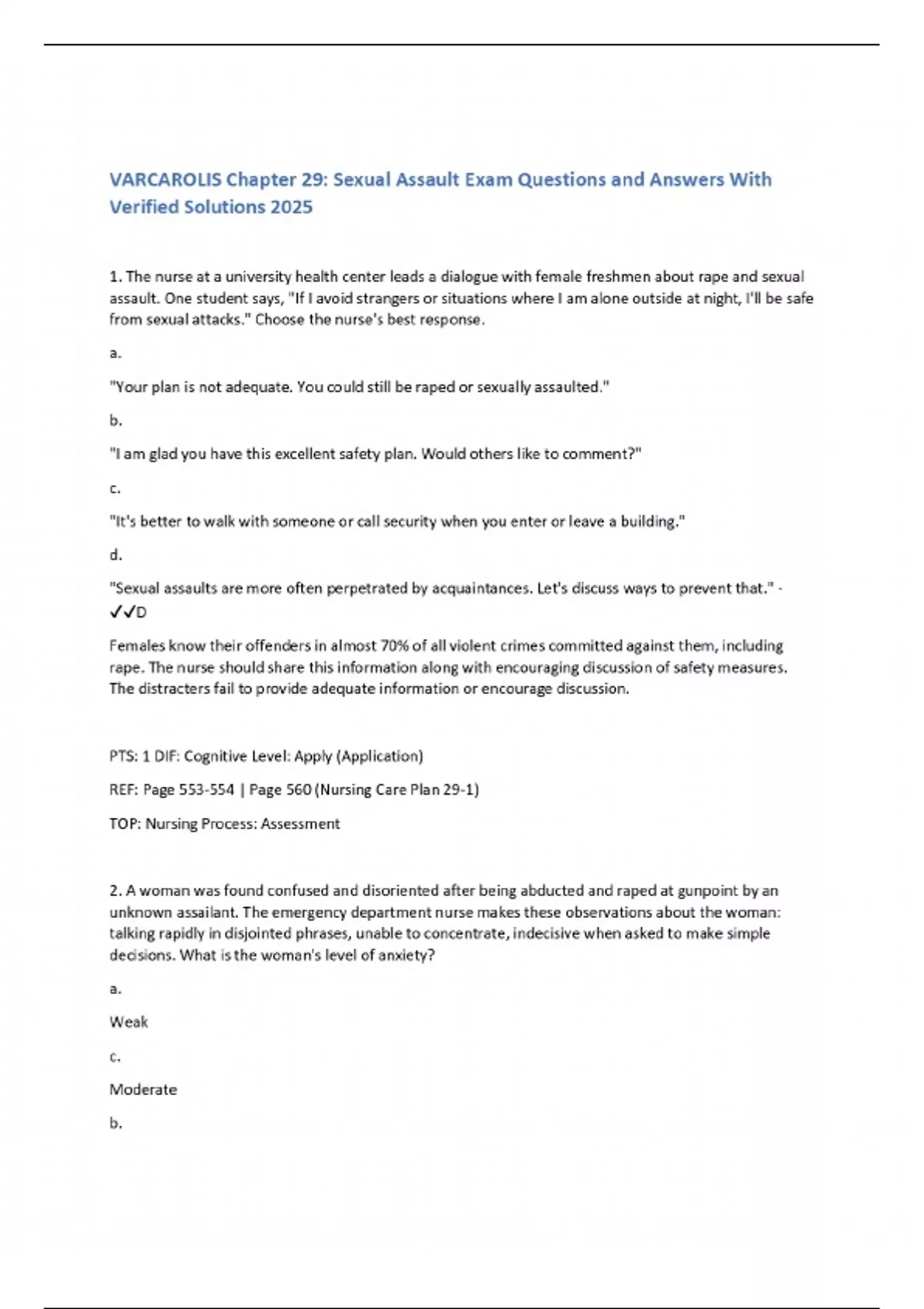VARCAROLIS Chapter 29: Sexual Assault Exam Questions and Answers With Verified Solutions 2025