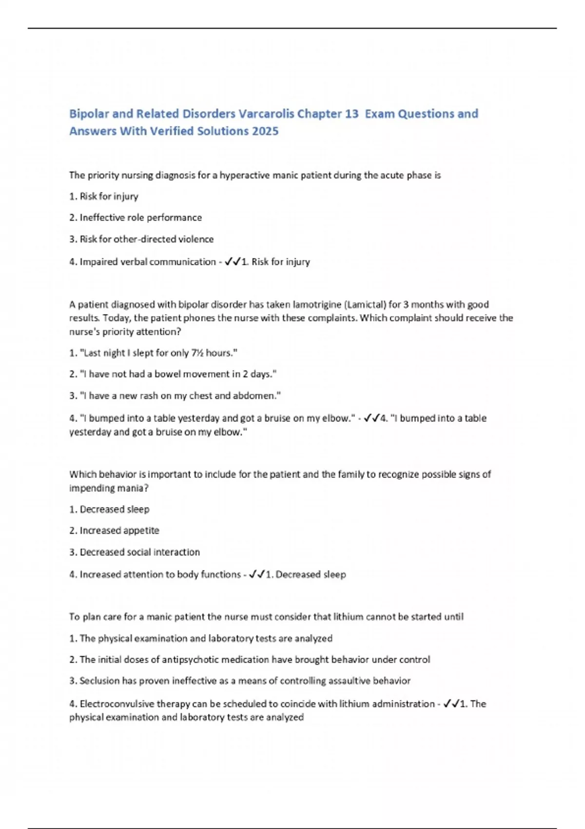 Bipolar and Related Disorders Varcarolis Chapter 13 Exam Questions and Answers With Verified Solutions 2025