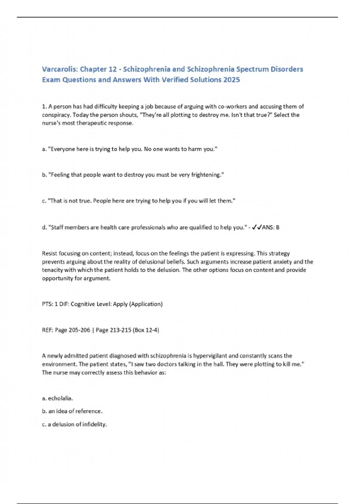 Varcarolis: Chapter 12 - Schizophrenia and Schizophrenia Spectrum Disorders Exam Questions and Answers With Verified Solutions 2025