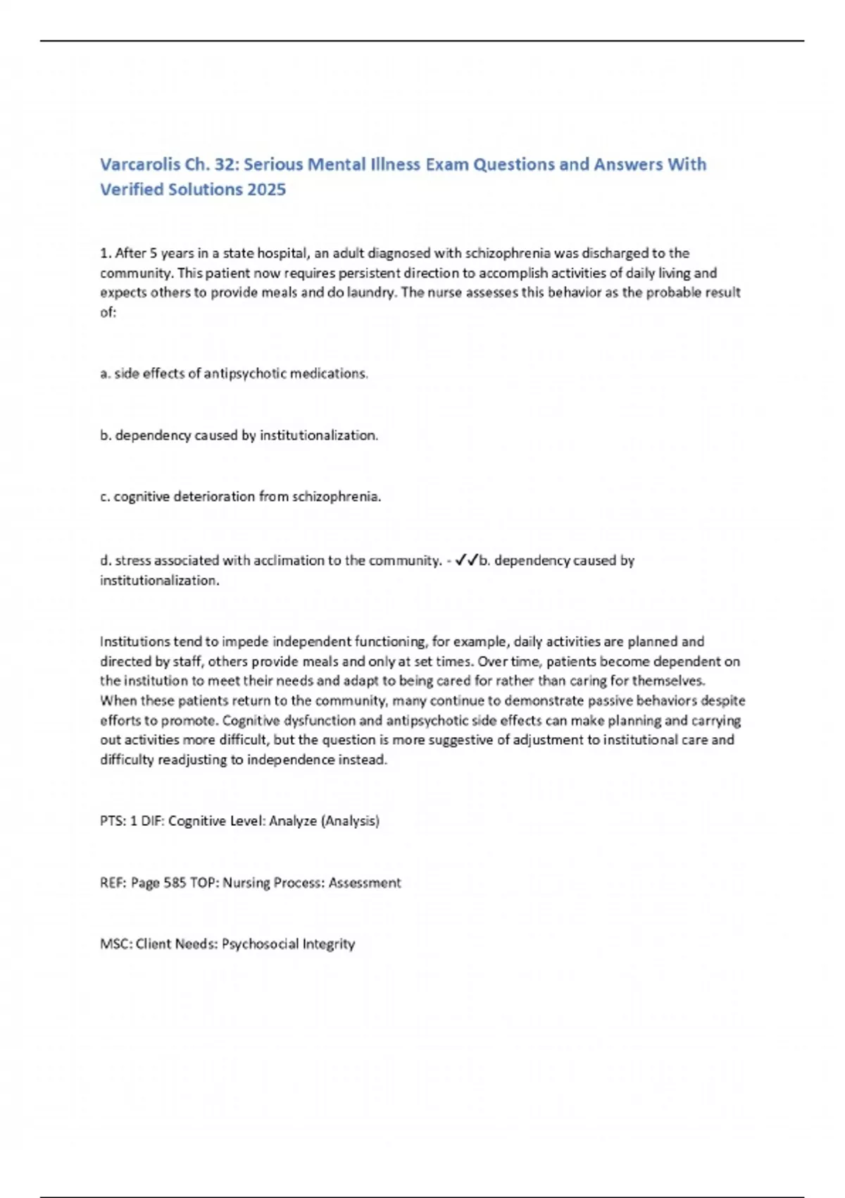 Varcarolis Ch. 32: Serious Mental Illness Exam Questions and Answers With Verified Solutions 2025