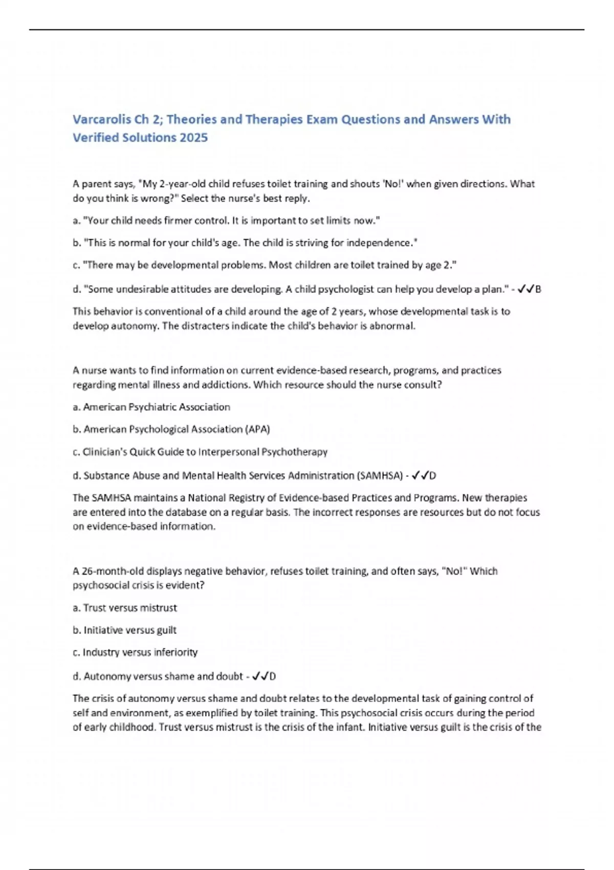 Varcarolis Ch 2; Theories and Therapies Exam Questions and Answers With Verified Solutions 2025
