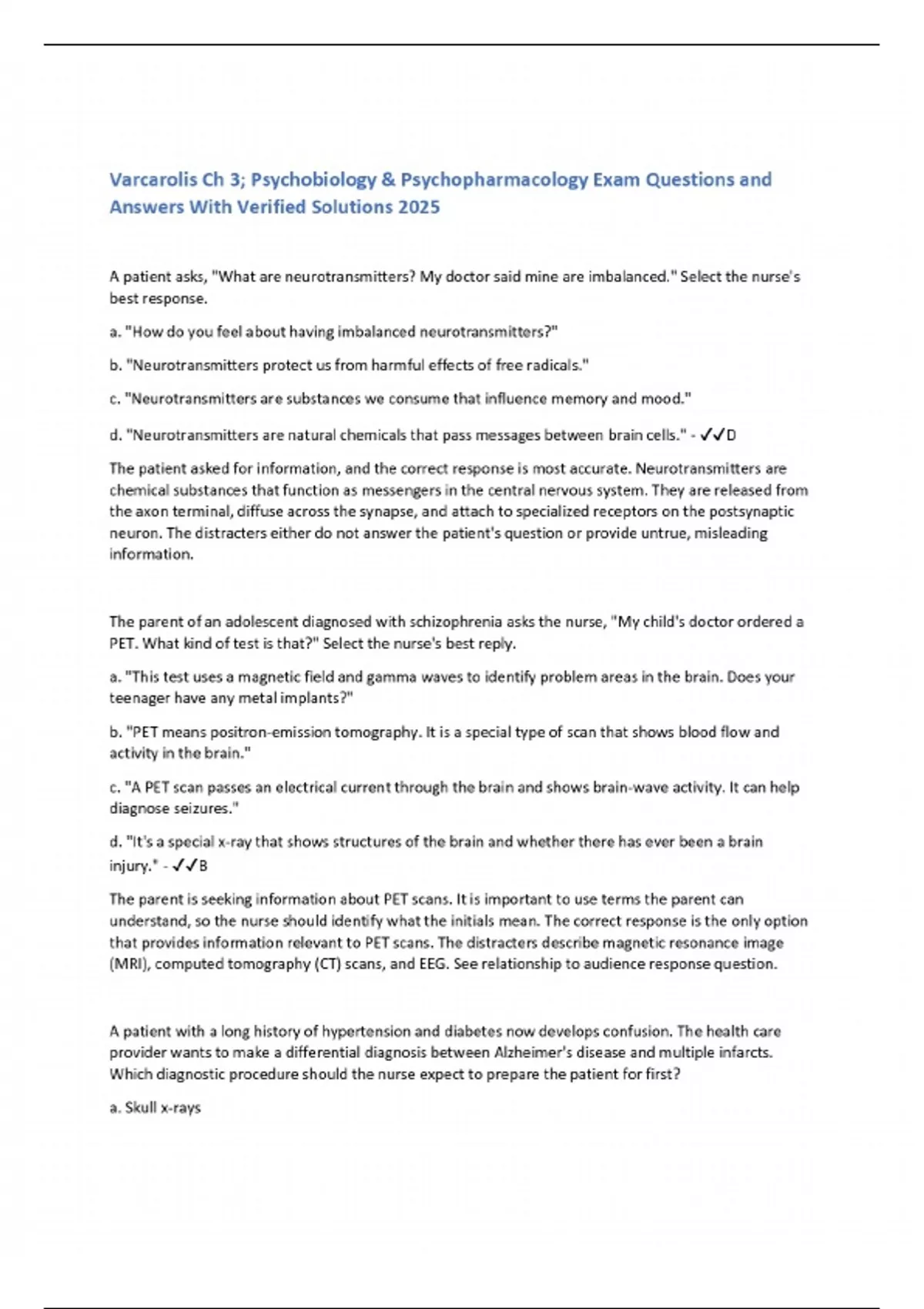 Varcarolis Ch 3; Psychobiology & Psychopharmacology Exam Questions and Answers With Verified Solutions 2025