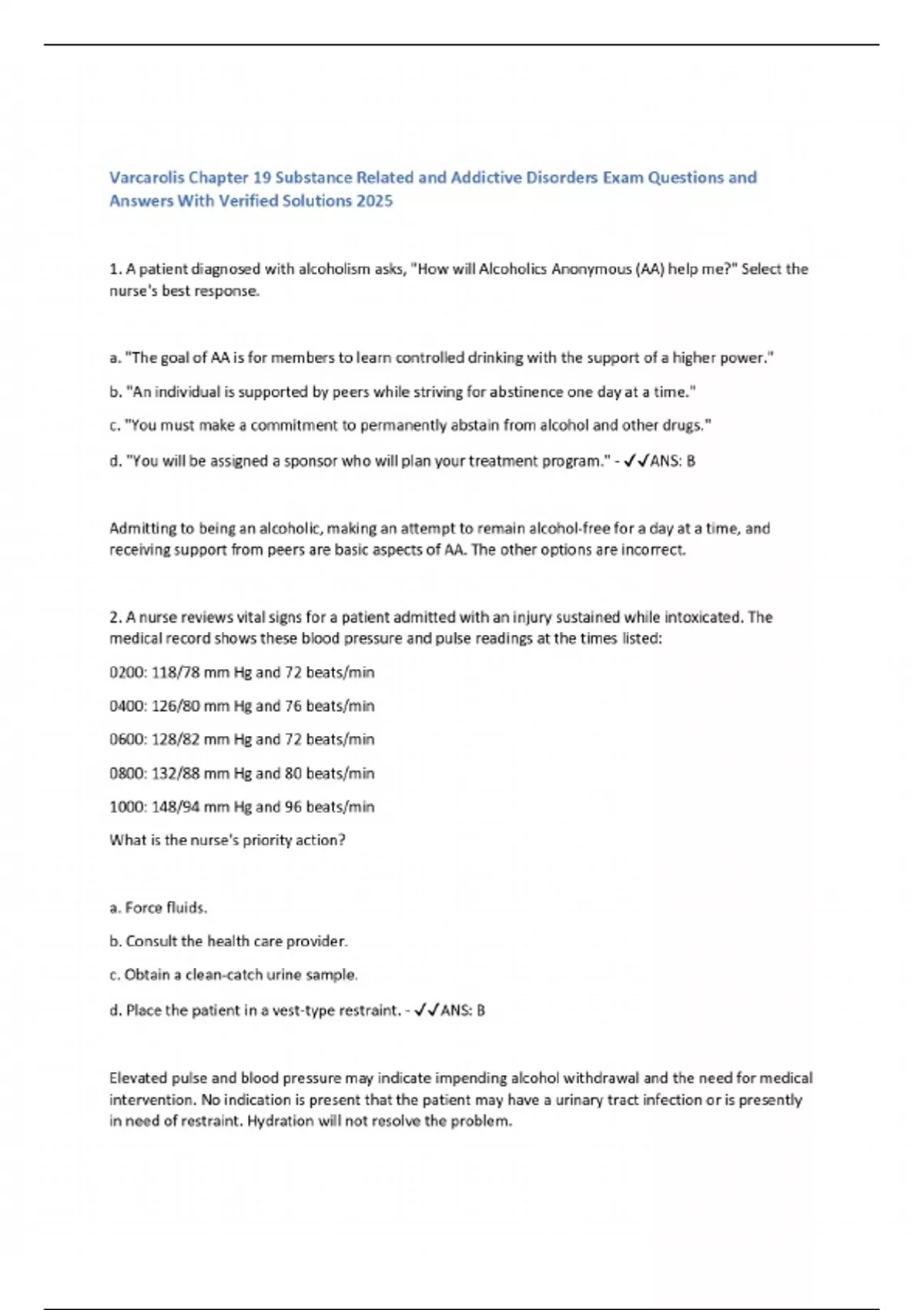 Varcarolis Chapter 19 Substance Related and Addictive Disorders Exam Questions and Answers With Verified Solutions 2025