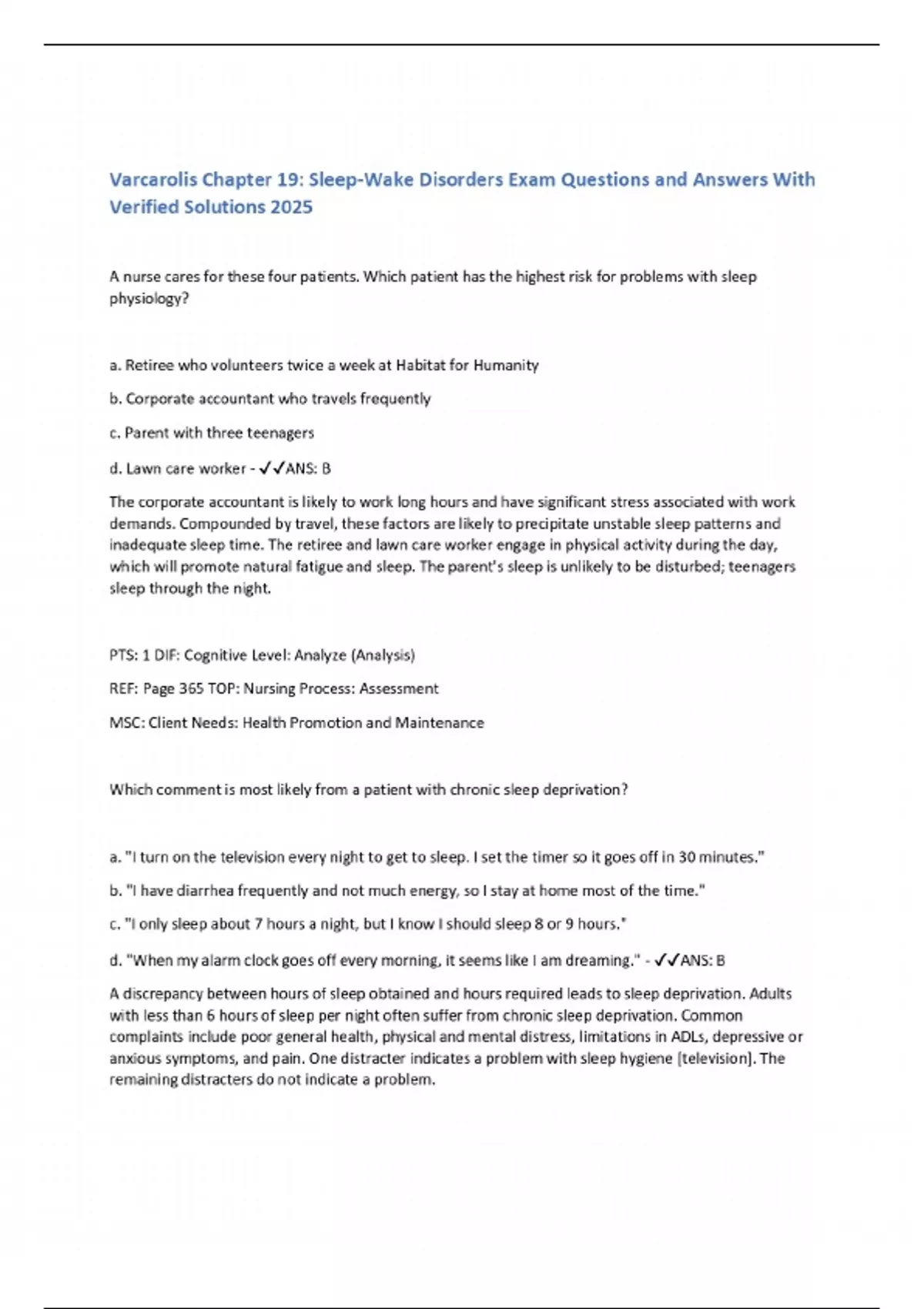 Varcarolis Chapter 19: Sleep-Wake Disorders Exam Questions and Answers With Verified Solutions 2025