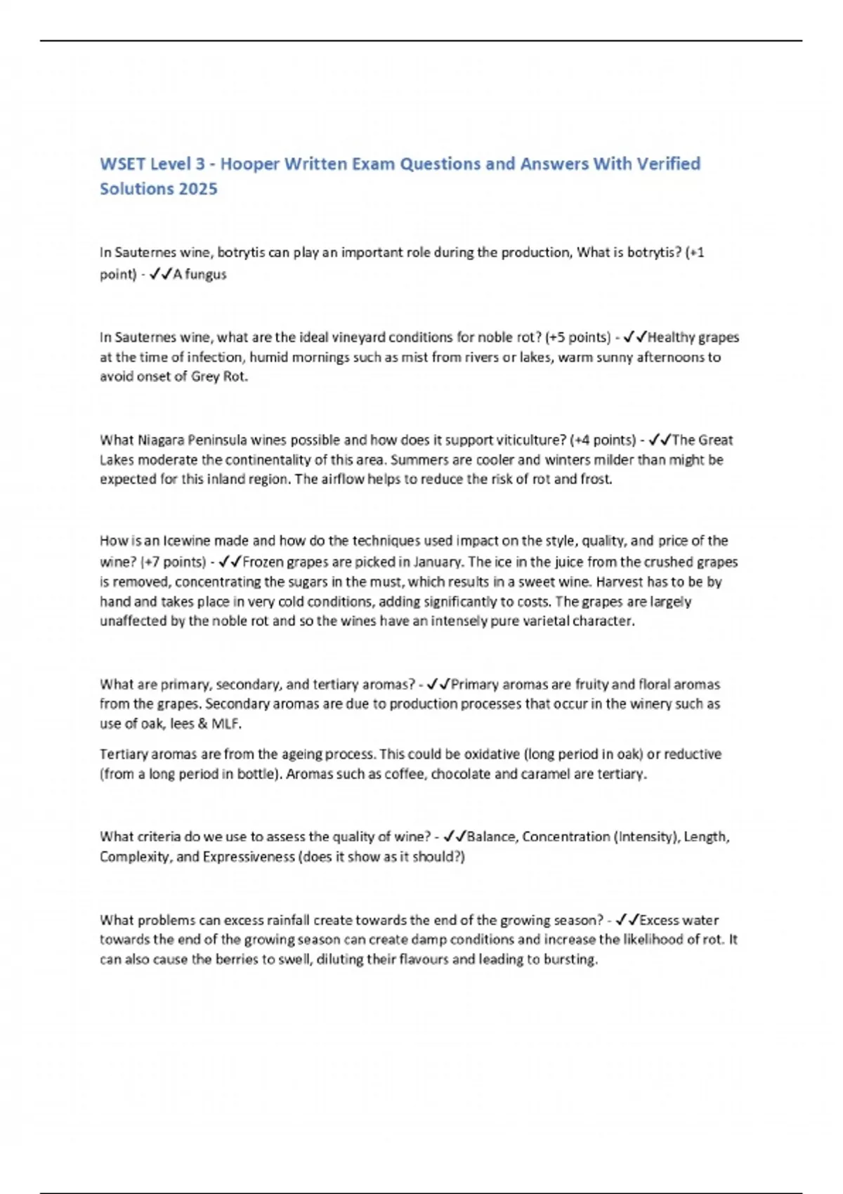 WSET Level 3 - Hooper Written Exam Questions and Answers With Verified Solutions 2025