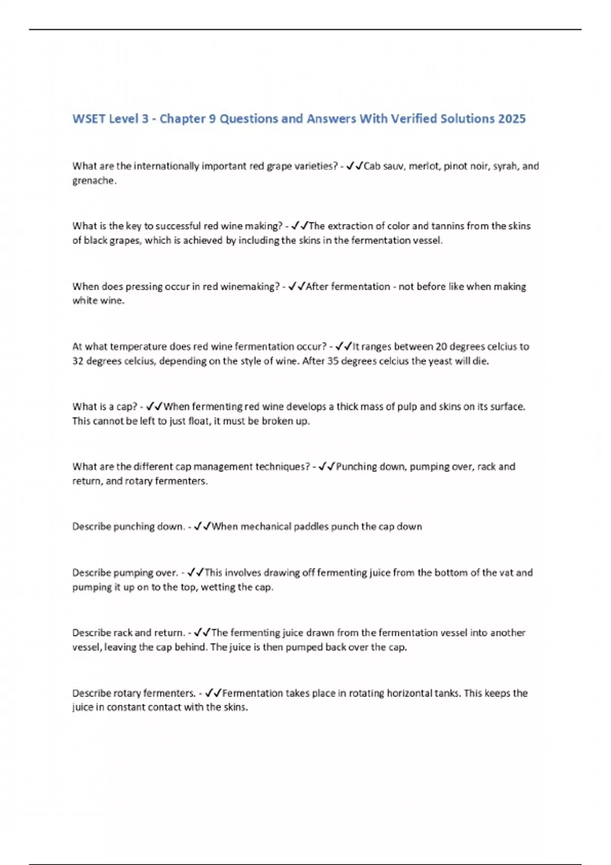 WSET Level 3 - Chapter 9 Questions and Answers With Verified Solutions 2025